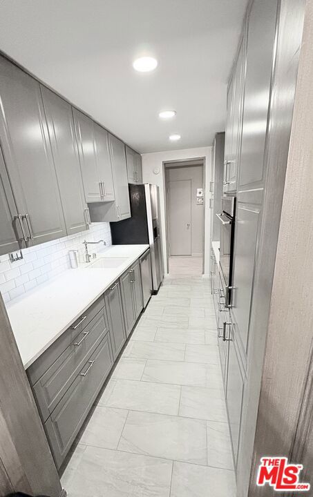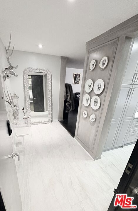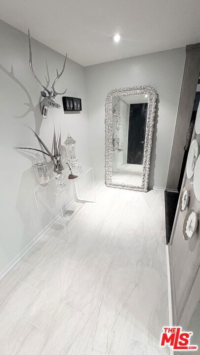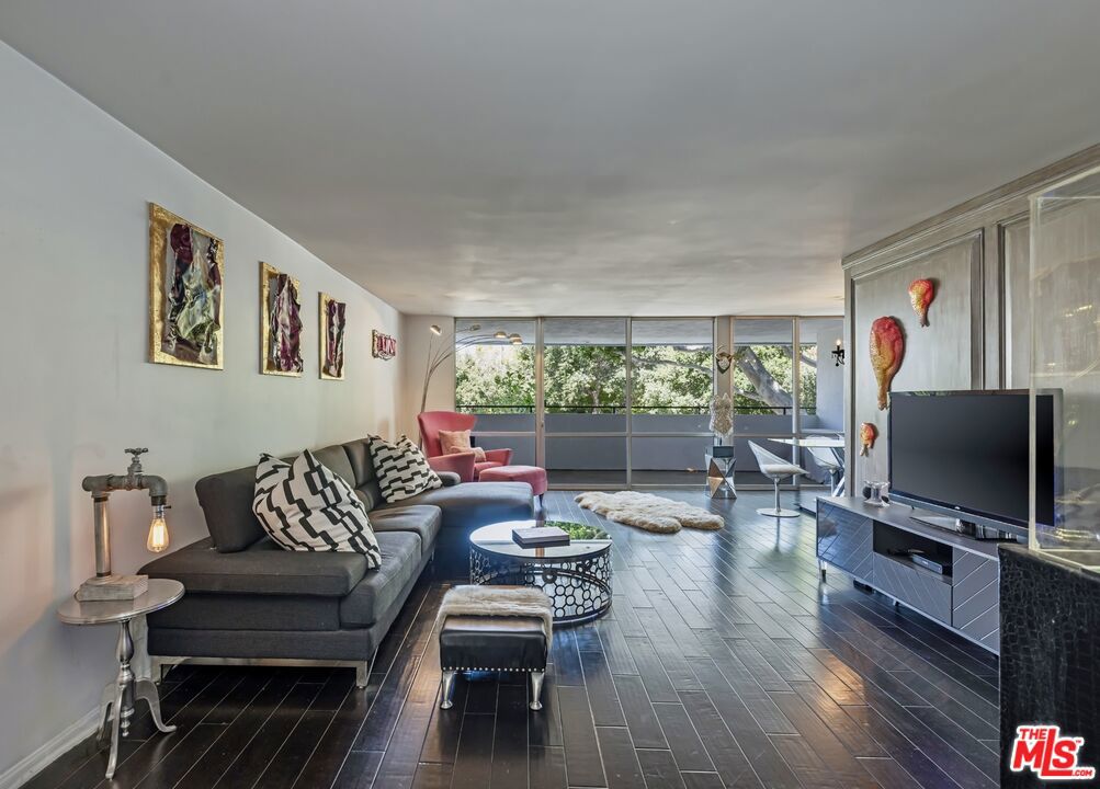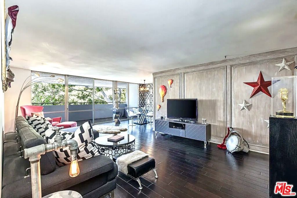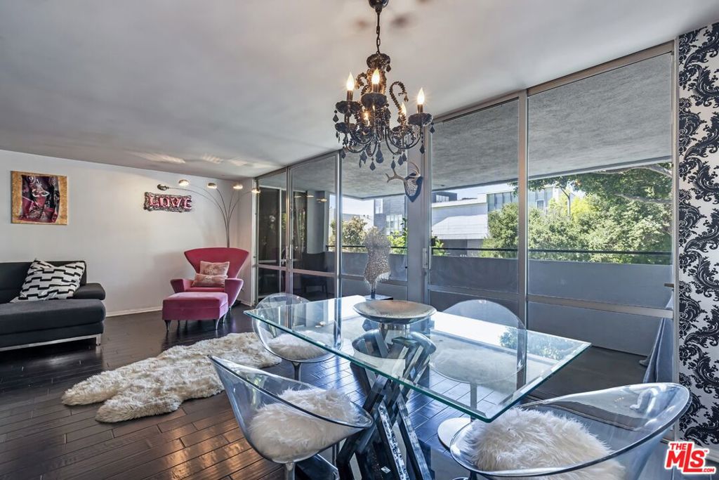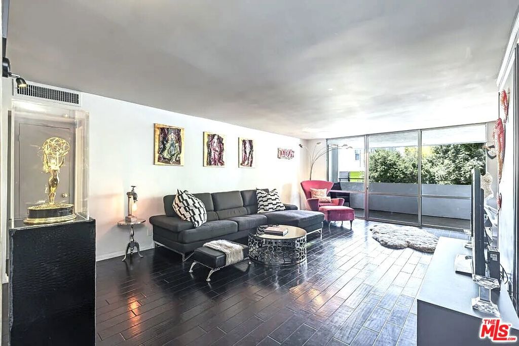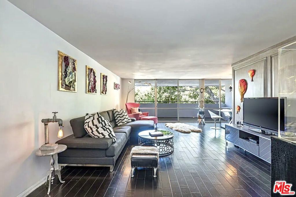 Located in the iconic mid century Kings Plaza, this recently remodeled West Hollywood condo offers a refined, moody aesthetic with timeless architectural appeal. Updated with a darker, more dramatic palette, the home balances elevated design with everyday comfort. With over 1,000 square feet of living space, it is among the largest one bedroom residences currently available in West Hollywood. Espresso toned hardwood floors run throughout, anchoring the open living space. Floor to ceiling glass sliders bring in natural light and open to a private balcony, creating a seamless indoor outdoor flow. The remodeled kitchen features sleek custom cabinetry, stainless steel appliances, and contemporary finishes. Updated bathrooms offer a clean, spa inspired feel with modern fixtures. The primary suite serves as a calm retreat with expansive windows and a comfortable, hotel-like atmosphere. Residents enjoy a landscaped courtyard with a heated pool and spa. Centrally located in West Hollywood, the building is moments from the Melrose Place Farmers Market, popular dining, boutique shopping, and Melrose and Santa Monica Boulevard. A standout opportunity to own a remodeled residence in one of West Hollywood's most desirable mid century buildings.