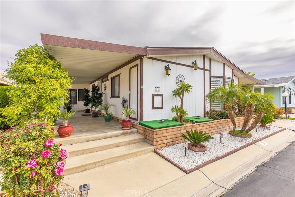 Turn-key, Moved In Ready and completely furnished for the new buyer! Charming 2-Bedrooms/ 2-Full baths, plus an Enclosed Sun Room with plenty of open space, views and natural light. This Double-wide manufactured home offers premium location with spectacular views and privacy in desirable Mountain View Estates a 55+ MH Park in East Hemet. The park offers a clubhouse busing with activities, full kitchen, fireplace, gym, banquet room, games. Outdoor pool/ spa, which is well maintained by management for year-round enjoyment! This lovely home offers dual pane windows, plantation shutters, granite countertops in the kitchen, with white kitchen cabinets, electric cooktop, wall oven, built-in microwave and amazing views from kitchen window and dinning/ living room. Fully landscaped, fruit trees, patio, large carport and workshop/ shed. Automatic sprinkler system and a care-free yard to ensure more time doing the things you enjoy while living in a community that offers "Pride of Ownership!"
