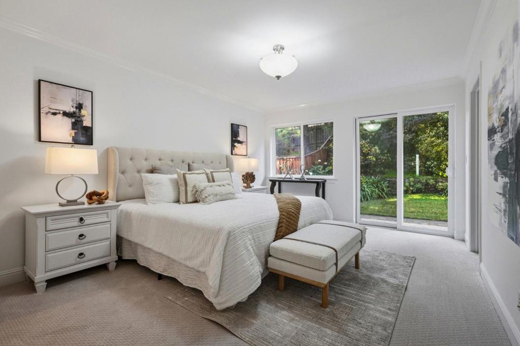 Welcome to an exceptional residence in the heart of Belmont, offering 2,800 square feet of thoughtfully designed living space. This elegant home provides comfort and privacy for both everyday living and entertaining. At the center of the home is a beautifully appointed kitchen, complete with a gas cooktop, solid-surface countertops, and a double oven.There is a separate dining room ideal for hosting dinners and gatherings. A family room opening to kitchen and back yard is ideal for everyday living or entertaining. Soaring ceilings,skylights, and hand painted sidelights enhance the homes light-filled, refined aesthetic. Modern comforts include central air conditioning, ceiling fans, energy-efficient double-pane windows, a built-in vacuum system for effortless living as well as a retractable sun shade over patio. Additional highlights include generous walk-in closets and an indoor laundry area. Every detail of this Belmont home reflects timeless elegance and elevated comfort. This home presents an opportunity to enjoy a well-designed residence in a desirable cul-de-sac location with top rated schools and convenient access to local amenities and transportation.