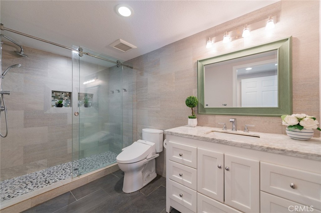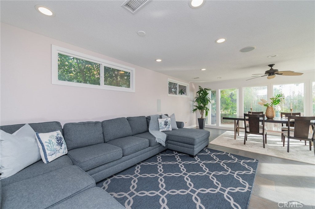 This stylish single-family residence is located in the highly sought-after Woodbridge, featuring a highly desirable south-facing orientation and a rare setting backing directly onto community green space, tennis courts, and the pool. With abundant natural light and unobstructed views, this exceptional location offers privacy and lifestyle appeal seldom found in the neighborhood. Upon entry, you are welcomed by a living room with vaulted ceilings and a warm brick fireplace. Corner windows facing the front yard fill the space with natural light, creating an inviting impression. To the right of the hallway, the kitchen, dining area, and family room form a well-designed and functional layout. The south-facing exposure keeps this living area bright throughout the day. French doors open to a sun-filled backyard and outdoor relaxation area, creating a seamless indoor–outdoor flow ideal for entertaining. The upgraded kitchen features stainless steel appliances, custom cabinetry, and a bi-fold window above the sink that enhances ventilation, natural light, and connection to the outdoors. The backyard enjoys a seamless visual connection to the community greenbelt and tennis courts, while floor-to-ceiling glass in the dining area and French doors bring lush greenery indoors and enhance the home’s bright and inviting ambiance. Adjacent to the family room is an upgraded full bathroom on the main level with modern tile and a frameless walk-in shower. Nearby, a functional zone leads to the garage and includes a laundry area and a built-in drop zone with integrated storage, hanging space, and a bench for added organization and convenience. All four bedrooms are located upstairs, with two on each side of the hallway and a shared bathroom tucked toward the rear. The primary suite enjoys a south-facing orientation and features a private patio overlooking the green space, along with an upgraded en-suite bathroom and a walk-in closet with a custom storage system. The home has no Mello-Roos, low HOA and paid-off solar, offers access to Woodbridge’s unmatched amenities, including two lakes with walking paths, multiple pools and spas, tennis and pickleball courts, parks, playgrounds, and year-round community events—delivering a resort-style lifestyle in the heart of Irvine.