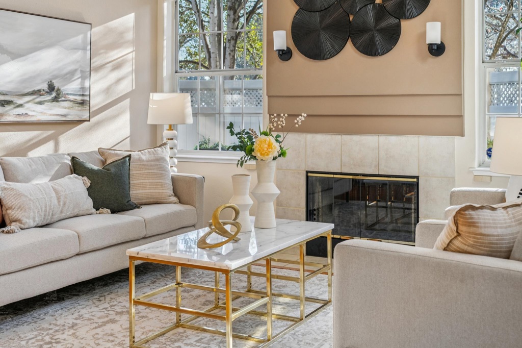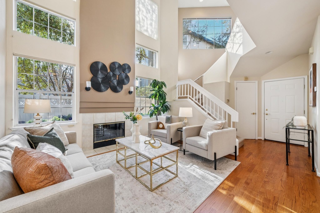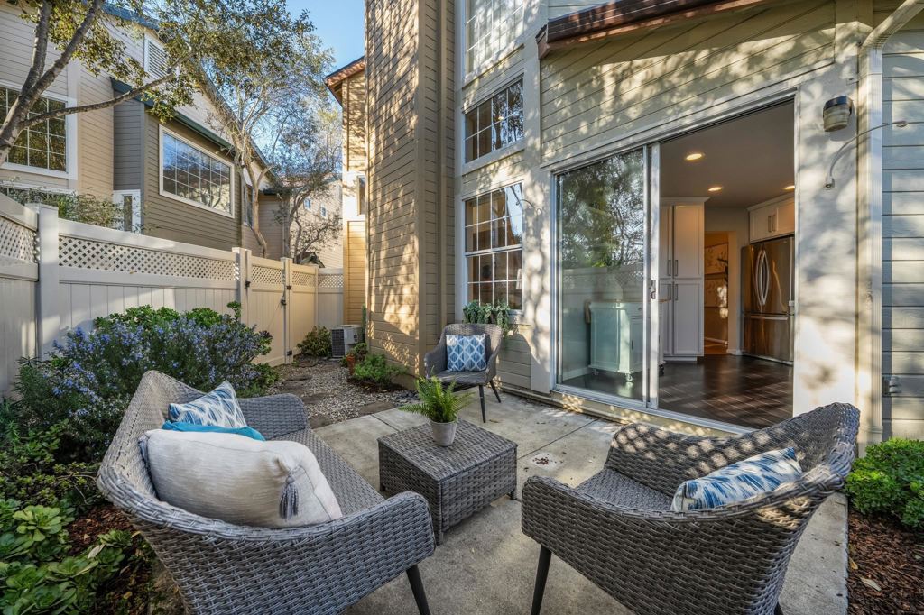 Gorgeous, light-filled home welcomes you with a dramatic entry featuring soaring ceilings and oversized windows that bathe the living spaces in afternoon sun. Thoughtfully designed, the layout offers two en-suite bedrooms upstairs, plus a third bedroom offering versatility as a den, office, or creative space. A dedicated dining area sits adjacent to the beautiful, modern kitchen, and glass doors open to a private backyard with a patio and two charming garden areas, perfect for relaxing or entertaining. The primary bedroom features vaulted ceilings and a walk-in closet, with comfortable separation from the second bedroom and bath while still feeling connected. A rare two-car garage with interior access includes an EV charger. Enjoy year-round comfort with forced-air heating and air conditioning, along with added peace of mind from a recently installed automatic gas shutoff and double-strapped water heater. Termite report has a Section 1 Clearance and Certification. Marina Bay offers an exceptional waterfront lifestyle with scenic shoreline paths, stunning Bay views, and easy access to the Richmond Ferry to San Francisco and beyond. Savor nearby waterfront dining, local breweries, and the amenities of this gated community, including a swimming pool and spa. OPEN FEB. 21 & 22, 2-4pm