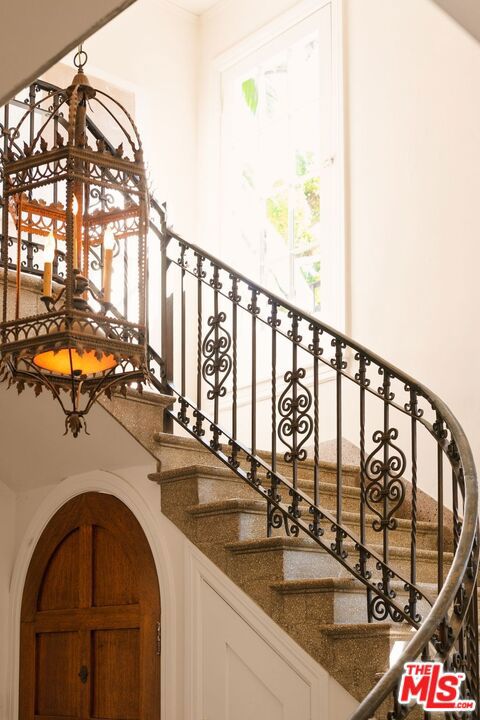 Located on one of Hancock Park's most prestigious blocks, 441 S Muirfield Rd offers a rare invitation to join a storied lineage of neighbors, from Howard Hughes and Buster Keaton to Shonda Rhimes and Antonio Banderas. The Mediterranean Revival estate captures a vibe that is truly "Unforgettable" - a nod to the history found just two doors down at the former Nat King Cole estate. You are greeted by a dramatic foyer and grand-scale entertaining rooms that possess the kind of original character modern builds simply cannot replicate. The home features four oversized bedrooms upstairs and a fifth on the main level, complemented by a basement perfectly suited for a private wine cellar. Outside, the expansive 18,541-square-foot lot serves as a private sanctuary, reminiscent of a coastal European villa featuring a classic pool and sports court tailored for a premier lifestyle. A significant value-add is the permitted, two-story guest house and garage, providing the ultimate footprint for guest suites, a professional music studio, high-end gym, or sophisticated home office. With its historic charm and unmatched pedigree, this is a once-in-a-generation opportunity to curate your future in the company of legends.