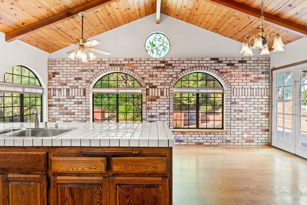 Spacious, well-maintained home with classic upgrades that still show beautifully. It offers a generous living area, a great layout, and a strong curb appeal throughout. A dual-purpose dining and living room feature a classic wood mantel fireplace, wood trim, and open, flowing layout perfect for both entertaining and after everyday living. The adjoining living space boasts an elegant full-wall fireplace mantel with custom built-in shelving and cabinetry. The warm and inviting kitchen features vaulted wood-beam ceilings, hardwood floors, tile countertops, custom wood cabinetry, and abundant natural light and its open layout is highlighted by a stunning brick accent wall and arched windows. Walk out to a private, resort-style backyard featuring a swimming pool, expansive patio, and mature landscaping. Terraced brick planters and serene hillside views create an outdoor retreat, ideal for relaxing, entertaining, and outdoor living. A versatile downstairs bonus room featuring a half-bath with direct access to the backyard. Upstairs living includes a spacious primary suite with en-suite bathroom plus two additional bedrooms. Located in a very desirable neighborhood close to schools, freeway access, BART, and vibrant downtown.