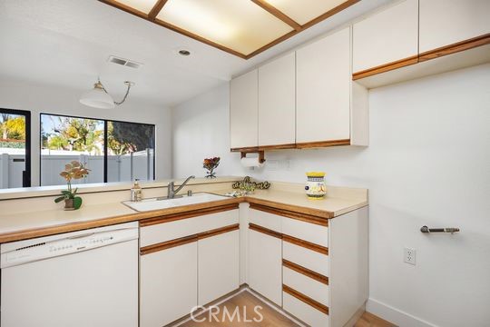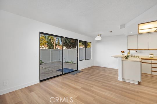 A true gem in the heart of Lake Forest Light and bright Corner model, 3 bed, 2-1/2 bath, with one wall attached on one side, that feels like a home. Overlooking Greenbelt with garden views, in sought-after Serrano Highlands, the largest of the three available plans in the community. Meticulously maintained, upgraded with designer paint in neutral colors, brand-new moisture-resistant luxury flooring throughout, except for the new carpeting on stairway. Light switches and electrical outlets/receptacles have been replaced with newer models. Enter via Garage entrance or through Patio gate into a welcoming Great room with a cozy fireplace (wood/gas) and downstairs bathroom. Formal dining room leads into kitchen, with outside garden patio views (backyard surrounded by new vinyl fencing and gate). Kitchen has attached Breakfast Bar leading to Family room/office/breakfast nook. Washer/dryer included in the separate Laundry room, with add'l storage. All three bedrooms are upstairs, with two additional (full) bathrooms with showers/tubs. Convenient Whole-house Water Filtration system adds convenience and comfort. This is a jewel with so much opportunity to upgrade the way you want. Low taxes. Enjoy community spa/pool, baseball, tennis, basketball, picnic areas, Tamarisk Park, Peachwood Park, and Tot Lot. Close proximity to Irvine Spectrum and Foothill Ranch, dining, entertainment, etc.; high ranking schools in the Saddleback Unified School District, and not far from Lake Forest Sports Park and walking trails.