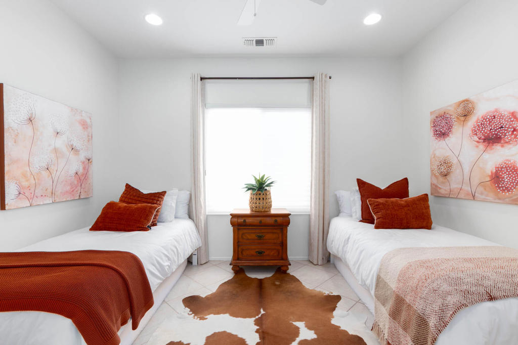 Immaculate and spotless Turnkey Elegantly Furnished, plus, Home for Sale in Sun City Palm Desert . Pasadena Model. This home is where the proverb ''GOOD THINGS COME in SMALL PACKAGES '' fits to a T. The home features a Great Room with an 85 inch TV, a Master Bedroom with Ensuite and a Custom Walk-in Closet , Den used as guest bedroom and has a beautiful Barn Door. The house has Newer Windows, Tile Flooring throughout , furniture is less than 2 years old, and only used seasonally. Kitchen has a new gas range. For laundry, a new Washing Machine ... ALSO included are TWO Electric Bikes , and a Golf Cart with New Seats, Batteries and more. A list of all furnishings, upgrades and more is available. A relaxing south facing Backyard with a covered patio a raised garden area and finished floor to enjoy the Desert mild winters. Low maintenance landscaping, 2 Car Garage Finished with Epoxy Floors. This home is ideal for a retiree interested in Sun City Palm Desert or looking to downsize. Gated with 24 hr. Security Guard. Just bring your toothbrush and suitcase and enjoy life . Please make sure to check the PHOTOS of this immaculate home. If you are a golfer, Sun City has 2 golf courses, sports courts, indoor and outdoor pools and spas, and much much more to list. The HOA Fee Includes Cable, Internet,Pest Control , and the Private neighborhood Pool & Barbecue. You do not want to miss this one!