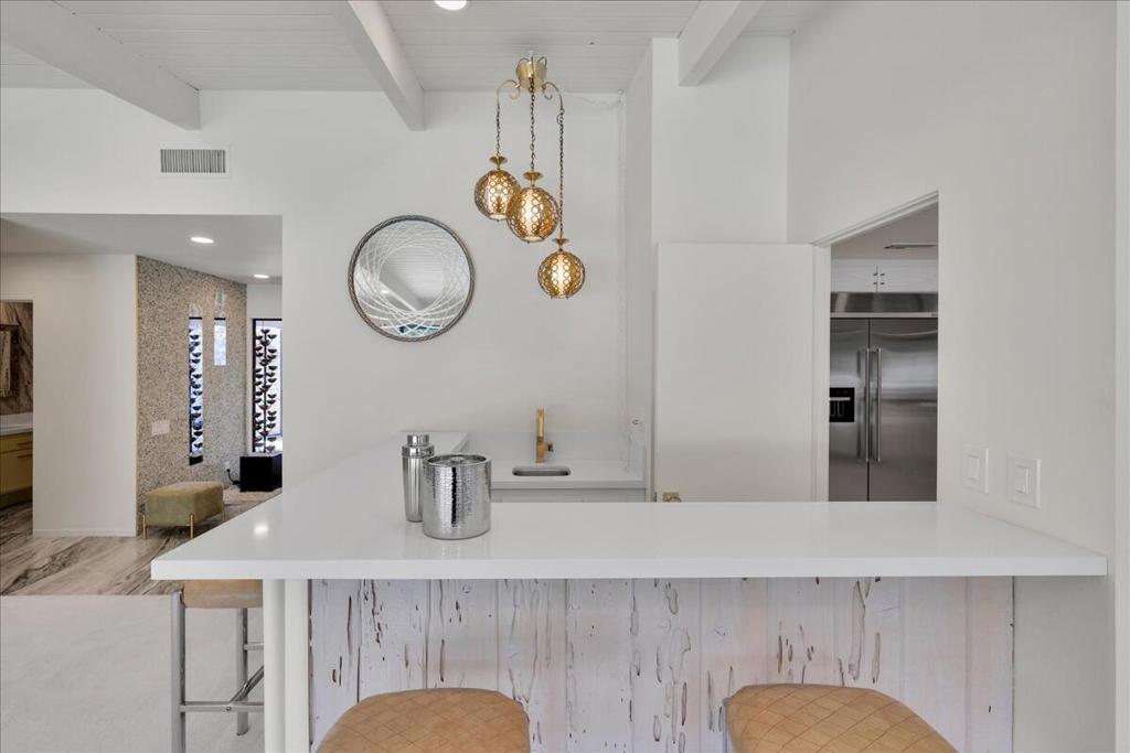 A beautiful, remodeled and up-to-date Desert Regency style home in the highly desirable Canyon Palms enclave of south Palm Springs. Live your Palm Springs dreams to the fullest! This home has been re-imagined from top to bottom and meticulously updated with custom touches everywhere! 3 en-suite bedrooms, each with access to the outdoors and its own patio - to give everyone in the house the privacy the crave. Additional powder room for your guests when entertaining. The grand living space is ideal for hosting gatherings of all sizes, with tall beamed ceilings, large rock-facade fireplace, and visually striking pecky cypress wet bar - all looking out a wall of glass towards the new sparkling pool and Mount San Jacinto. Your new kitchen awaits with all-new appliances, perfectly sited for everyday living and for hosting large dinner parties - just off the bar and dining area for easy access while still providing separation from your guests. The adjacent breakfast nook leads out to the covered dining patio. Every inch of this home was carefully thought out by the original architect (Was it Charles E Du Bois? Inquiring minds want to know!) Style, function, layout and location. This home ticks every box on your dream home wish list. Live and entertain the way you've always wanted to.The Canyon Palms neighborhood is an enclave of approximately 200 single family homes on fee-simple land that YOU own in south Palm Springs bounded on each side by Indian Canyons, Twin Palms and Smoke Tree Ranch. This is one of the most desirable areas in all of Palm Springs, with lush landscaping, towering palm trees, and close proximity to all of your favorite things to do - whether its shopping, dining, or golfing! See it now!
