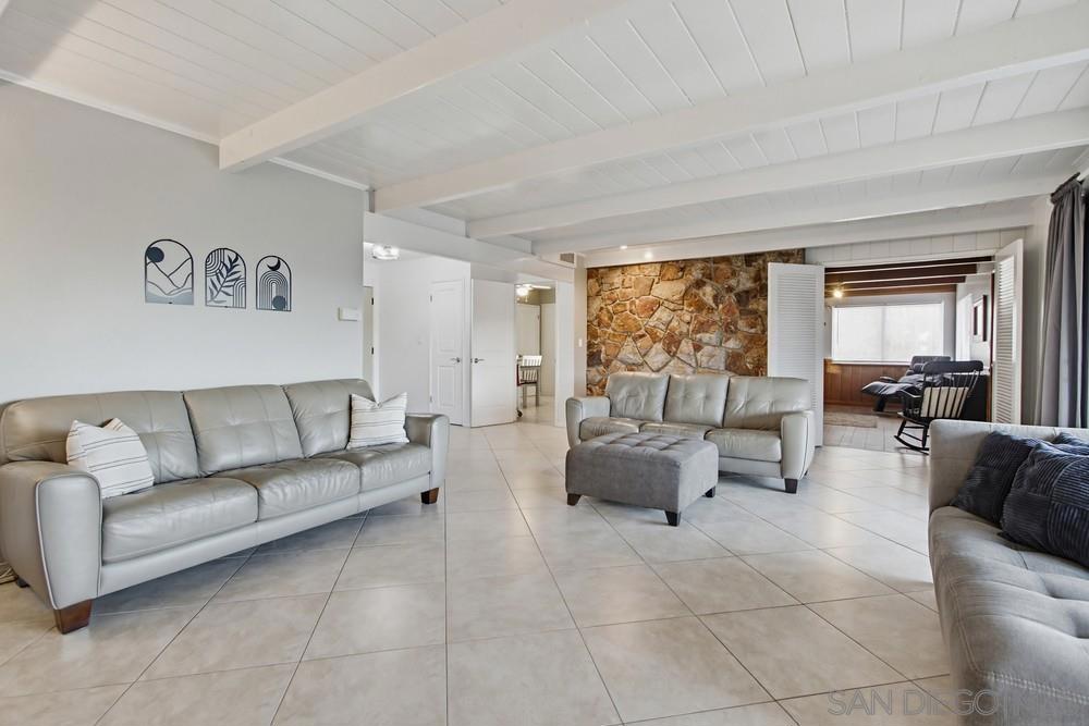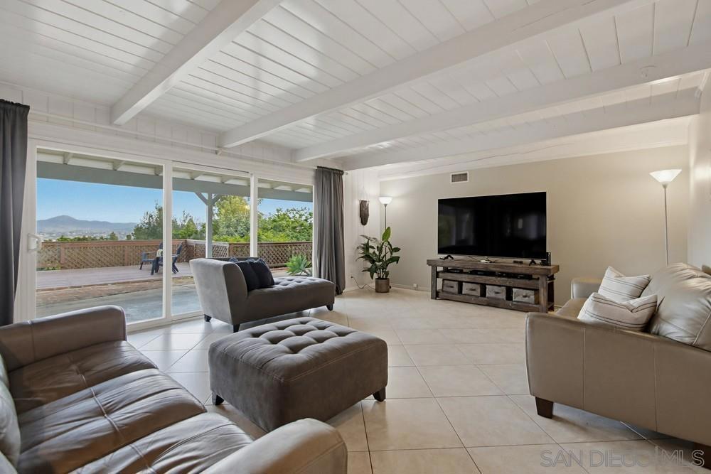 It's not just a home-it's a lifestyle. Highly sought-after, 1 level, Eastridge home with stunning views of area mountains and city lights! Home built by famous architect Ed Heacock! Home is nestled amongst tropical landscape on the 13,900 sq.ft. lot for utmost privacy and quiet! Impeccable pride-in-ownership greets you! Enter and fall in love with the beautiful flowing natural light! Big living room with oversized slider allowing the beautiful views inside! Spacious family room with cozy fireplace for cooler evenings! Can easily add a table in both the living and family rooms for more formal meals! Great kitchen with all the bells and whistles the chef in the family will love + tons of counter and cabinet space! Breakfast area for your more casual meals! Light and bright primary suite with updated en-suite bath! Additional bedrooms are nicely sized! Huge view backyard with covered patio, large deck area, basketball court, lush landscaping, plenty of room to play or entertain, and amazing Mt. Helix, area mountains, and city light views every day! Go down stairs to additional yard space and big storage shed! Details not to miss-2 car garage, inside laundry room, cute powder room, central heating and air +! Make this YOUR home-before someone else does! Welcome Home!