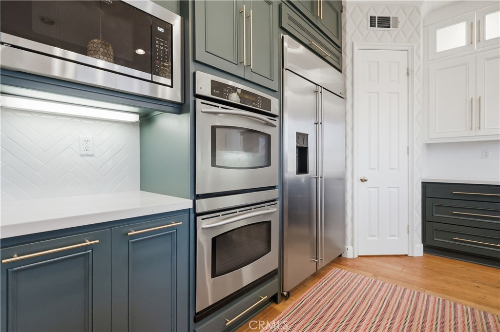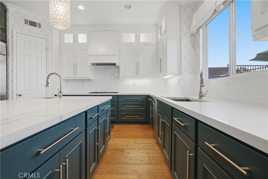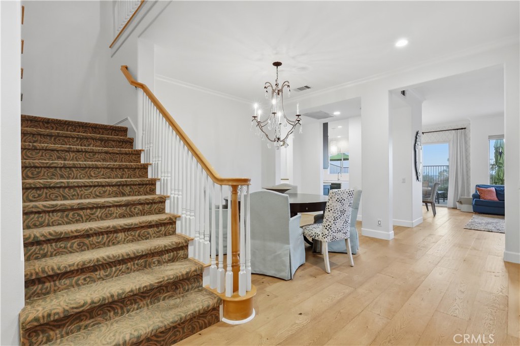 Nestled at the end of a quiet cul-de-sac within an exclusive gated community, this exceptional five-bedroom executive home offers privacy and sweeping views of the San Gabriel Mountains. Built in 2003 and thoughtfully upgraded, the residence blends timeless design with modern comfort. The gourmet kitchen features premium stainless steel appliances, double ovens, quartz countertops with marble veining, dual sinks, gold accents, lighted cabinetry, a walk-in pantry, and an abundance of cabinetry for optimal storage and functionality. The versatile floor plan includes a main-level ensuite bedroom, rich hardwood flooring, two fireplaces, formal dining room, and expansive living spaces filled with natural light. A dedicated laundry room with built-in storage and utility sink adds everyday convenience. Upstairs offers two additional ensuite bedrooms and a spacious primary suite positioned to capture mountain views from its windows. The primary bathroom showcases an oversized vanity area with extensive storage, a separate soaking tub and walk-in shower. Relax in the bath while enjoying mountain views and watching planes descend in the distance. The low-maintenance backyard features a raised deck, above-ground spa, and panoramic views, perfect for enjoying sunrises, sunsets, and seasonal fireworks. A three-car garage with ample storage and an extended driveway complete the home. Ideally located in Signal Hill with convenient access to freeways, beaches, CSULB, Long Beach Airport, and scenic walking trails.