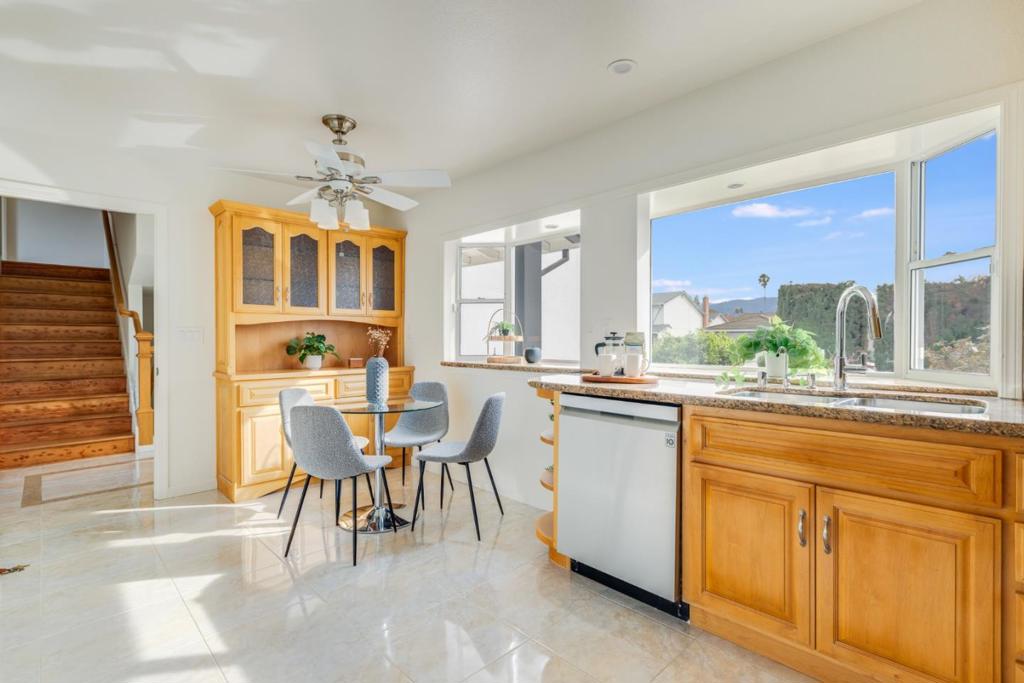 First Time on the Market & Lovingly Maintained By One Family! This 4BD, 2.5BA home w/ a lower-level flex/bonus space offers an ideal balance of openness & separation, creating a layout that supports both togetherness & everyday living. The main level features a welcoming, light-filled design where the living & dining areas connect while still feeling distinct. Just beyond, the kitchen & dining nook feature a gas range, stainless steel appliances & views of lush greenery w/ great natural light. The lower level provides a versatile extension of the home w/ a cozy fireplace, wet bar, wine fridge & half bath perfect for a media room, secondary living area, playroom, or wellness space. The finished garage w/ epoxy floors offers flexibility for a home gym, hobby space, or storage. Upstairs, all 4BD's are on one level, including a primary suite w/ ensuite bath & dual closets. Some bedrooms offer picturesque mountain views. The home has been refreshed w/ interior & exterior paint, refinished wood floors & landscaping. Custom maple cabinetry adds charm throughout. Lush Fruit trees & a flat, low-maintenance backyard create the perfect gathering space. Located near vibrant Downtown Campbell w/ shopping, cafes, eateries, parks, Top schools & major tech Giants nearby. Welcome Home!