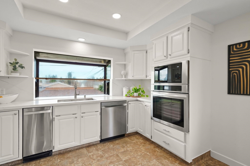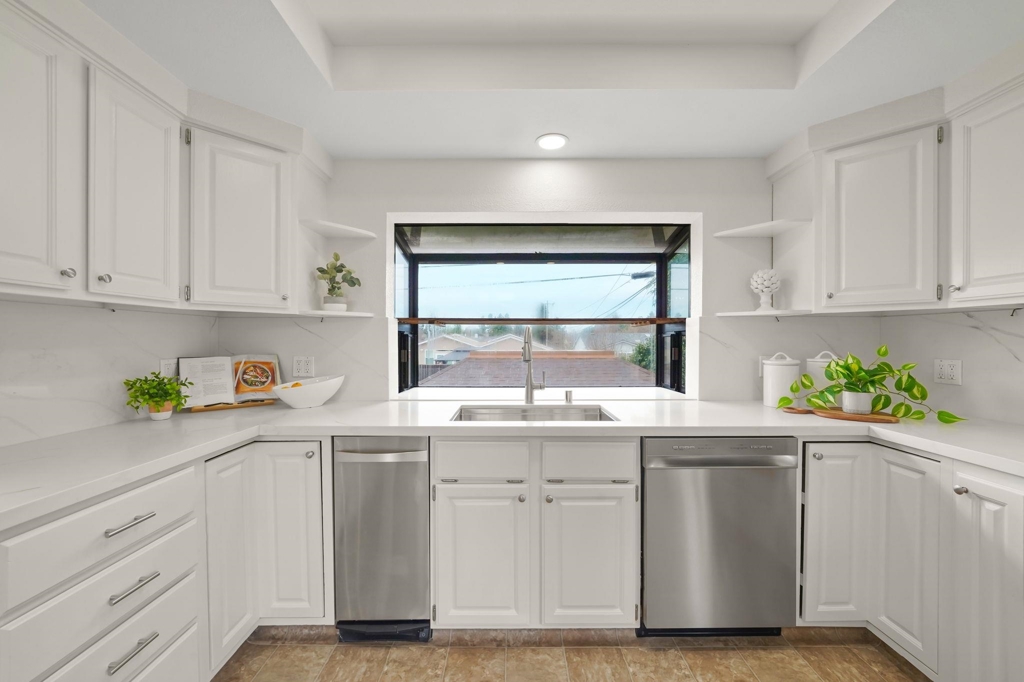 Welcome to this stunning residence located in a highly desirable family-oriented neighborhood. This beautifully updated home features 4 bedrooms and 2 full bathrooms with a downstairs bedroom and full bathroom. The downstairs bonus room with a wet bar with a beautiful, large walnut counter could be converted into a kitchen for social gatherings, or an in-law suite. Upstairs, enjoy a bright living room with vaulted ceiling and a large double door to the private balcony with beautiful hill views. The remodeled gourmet kitchen features white cabinetry with quartz counter, a spacious eat-in area, top-of-the-line appliances, and a charming garden window with large bay window over the sink. Additional features include a newly painted interior, new kitchen flooring, new carpeting throughout, updated recessed LED lighting throughout, and an inside laundry. The private low maintenance yards feature a spacious patio, mature trees including a lemon tree, a full size detached workshop with upgraded 220 electrical, and full 2-car garage. This home is close to shopping including Fremont Hub, parks, and top-rated schools, with easy access to 880, 680, 84/Dumbarton Bridge and BART station for a convenient commute to Silicon Valley, Peninsula & San Francisco.