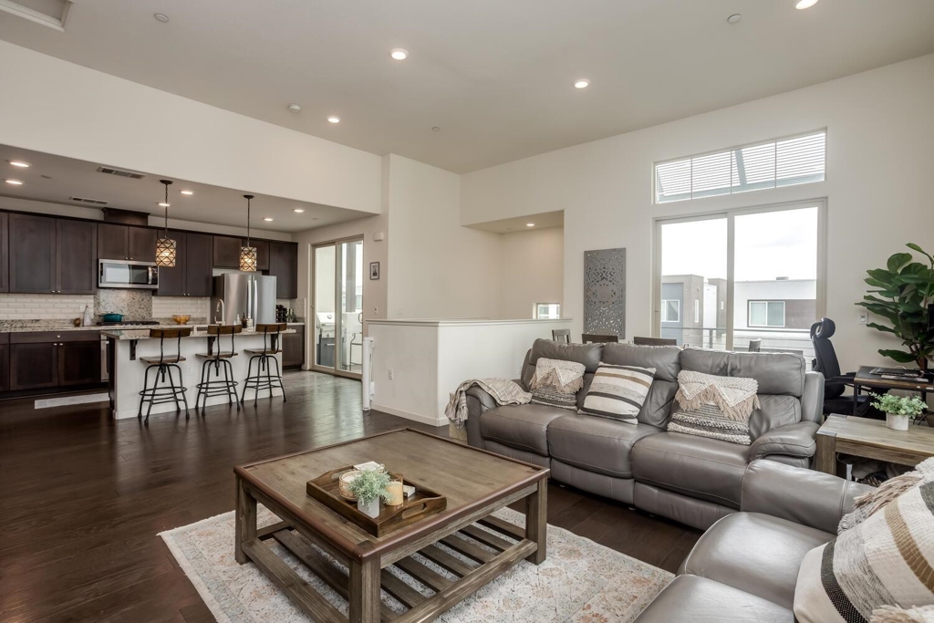 Nestled in the scenic Communications Hill, this bright townhouse-style condo offers sweeping views of the valley. As you climb up, you will find that all living areas are situated on one level. The high ceiling is complemented by large windows. Open concept layout features a spacious living area adorned with contemporary finishes and a private balcony, perfect for savoring a coffee. Step inside to a welcoming lobby, graced with beautiful tiles that set the tone for the elegance that permeates this home. The kitchen is a chef's delight, equipped with granite countertops, abundant cabinetry, gas stove and an island. It also boasts its balcony, ideal for a barbecue. A walk-in pantry provides ample storage, and a water softener ensures quality water. The primary suite boasts a walk-in closet and an updated ensuite bath with a dual sink vanity. An additional bedroom, perfect for guests or a home office. Laundry is located near the bedrooms. An attached 2-car tandem garage with a tankless water heater adds convenience and efficiency. Enjoy the neighborhood with its scenic trails and community park, perfect for outdoor activities. With easy access to Hwys 87, 280, and 101, commuting is a breeze, and the proximity to downtown offers shopping and dining options.