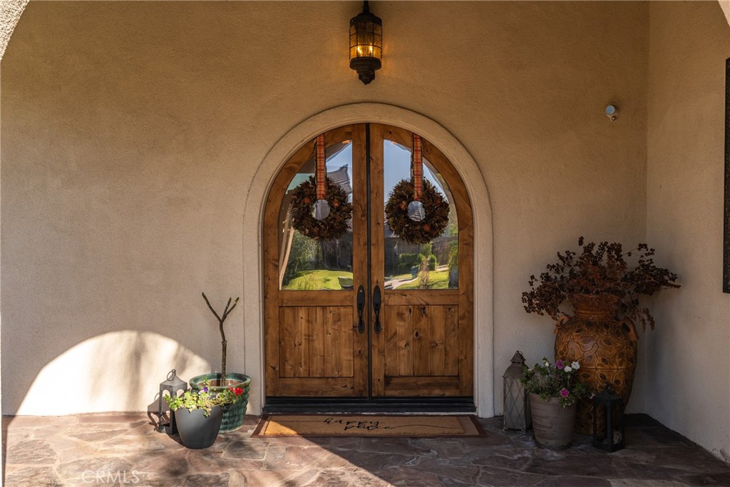 Custom-built with a commanding presence, drawing influence from Spanish and Mediterranean styles. Newly remodeled with luxury upgrades! City light and mountain views! At the end of a private cul-de-sac within the highly sought-after Smiley Heights district in South Redlands. The estate’s impressive, sweeping front lawn and tall, manicured palm trees provide a dreamy setting for your Mediterranean oasis. Through a stately arched portico and old-world double doors, step into a sizeable formal entry with travertine tile and a custom floor mosaic. High ceilings and plenty of tall windows elevate the space and fill it with warm, natural light. Plenty of room to host or simply relax in your own way with a family room, a living room, an office, a great room, and a huge dining room. All bedrooms feature en-suite baths and walk-in closets. But the crowning jewel is your spacious primary suite. Here you can lounge in peace in front of your custom fireplace or wake up to a gorgeous mountain view as you step out onto your own private balcony! Throughout the house, recent upgrades include new paint, crown molding, travertine and wood floors, new granite countertops, modern luxury lighting, new garage doors, a new tankless water heater, a whole-house water purification system, paid Tesla Solar & Battery, and so much more! The family room is wired with a speaker system and includes built-in cabinetry. Prepare meals like a pro in your dream kitchen, complete with new Taj Mahal Quartzite countertops, custom cabinetry with slide-out & touch control drawers and trash bins, stainless steel appliances, a wine fridge, a new kitchen island, new lighting, a walk-in pantry, and a butler’s pantry. Unwind in your custom backyard retreat, which boasts an edible landscape of strawberries, 12 grape vines, and over 20 different fruit trees! Korean grass and native pollinators complete the oasis, along with raised garden beds, a gas fire pit, and landscape lighting. Plenty of room for an RV. Fall in love with the natural beauty of San Timoteo Canyon as you hike the nearby Carriage Trail. Schedule a private showing today!