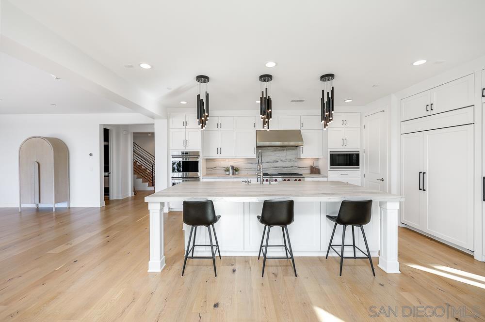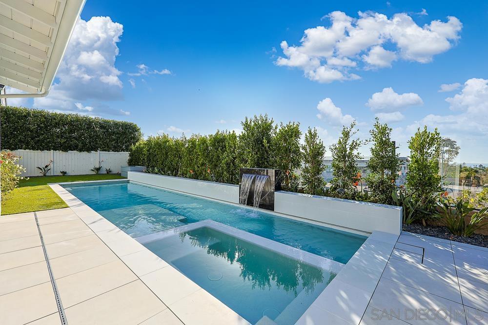 Ocean views, a pool and spa, a private sauna, and sunset skies set the tone for this standout coastal retreat in Encinitas! One of just 13 custom homes built in 2019, this residence sits on a premier corner lot with ocean views, five bedrooms, four and a half baths, a three car garage with EV charger, owned solar, and thoughtfully designed indoor and outdoor living. The corner lot position floods the home with natural light from multiple exposures, while the ocean views create a daily backdrop that elevates every room. The main level features a first floor bedroom with ensuite, ideal for guests or flexible living arrangements. The kitchen opens to the living and dining spaces with quartz counters, stainless appliances, and an oversized island. Upstairs, the primary suite includes dual vanities, a soaking tub, walk in shower, and substantial closet space. A dedicated office on the second floor captures some of the best ocean sunset views in the home, creating an inspiring work from home setting. Three additional bedrooms complete the upper level. The backyard is entirely turf, pool, spa, sauna, and concrete, so minimal maintenance is required.Owned solar helps eliminate ongoing energy costs. The 2019 build offers current systems, quality finishes, and no deferred maintenance. Located minutes from Moonlight Beach with easy freeway access. This is turnkey Encinitas living with ocean views, modern construction, efficient design, and a location that delivers on the coastal lifestyle.
