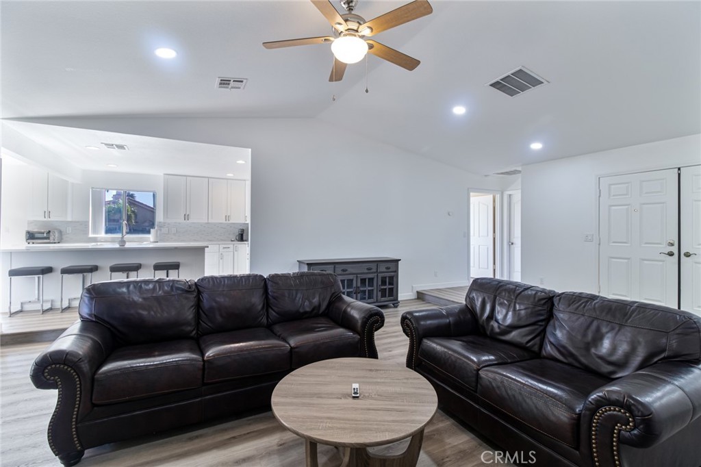 This amazing home is recently renovated and upgraded with an open floor plan with vaulted ceilings and spacious living room that flows into the kitchen/dining area. Updated Kitchen Equipped with upgraded appliances including electric range and dishwasher and a refrigerator. Gas fireplace in living area. Large primary bedroom with upgraded en-suite bathroom, walk-in closet, and backyard access. Guest Bedrooms Positioned separately for privacy. 2-car attached garage with extra space for a golf cart. Large covered back patio ideal for outdoor living. Located inside the wonderful Mission Lakes Country Club, a gated golf course community with amenities like: golf course access, lagoon-style pool and spas, tennis courts, fitness center, clubhouse with dining, and community lake views. Mediterranean-style architecture with stucco exterior and tile roof; well-maintained desert landscaping and an inviting gated entry. Mounted views of surrounding mountains from the property.
