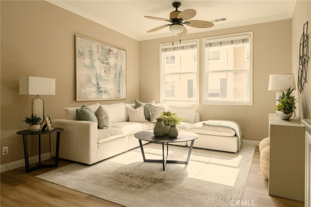 Located in one of Fullerton’s most desirable neighborhoods, this beautifully maintained tri-level home sits in the sought-after Amerige Heights “Radcliffe” community by renowned builder MBK Homes. Tucked into a quiet interior location, the welcoming front porch sets the tone for relaxed, upscale living. The home features 3 bedrooms, 2.5 bathrooms, and a private layout with no one above or below. The living room offers a cozy tile fireplace, while brand new wood like luxury vinyl and tile flooring run throughout. The open-concept kitchen includes granite counter tops, white cabinetry, black appliances, stainless steel dishwasher, center island, and adjacent dining area, ideal for everyday living and entertaining. The spacious primary suite offers dual sinks, separate tub and shower, and a large walk-in closet. Additional highlights include recessed lighting, crown molding, ceiling fans, upstairs laundry, powder room, and direct access to an oversized 2-car garage with storage and workspace. Guest parking is conveniently nearby. Enjoy resort-style HOA amenities including pool, spa, tennis courts, clubhouse, high-speed internet, and beautifully maintained grounds. Walking distance to top-rated schools such as Robert Fisler Elementary/Junior High, Sunny Hills High School, Arborland Montessori, and Amerige Heights Shopping Center. Close to parks, golf, dining, and shopping.