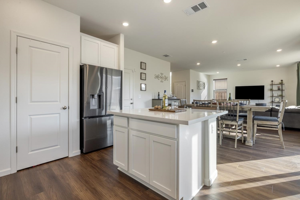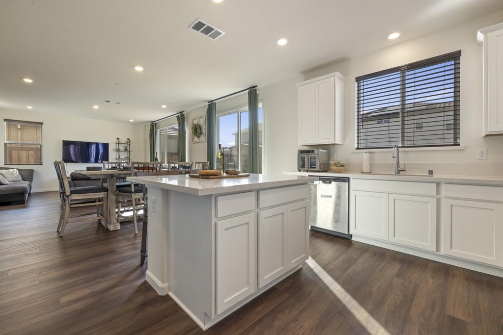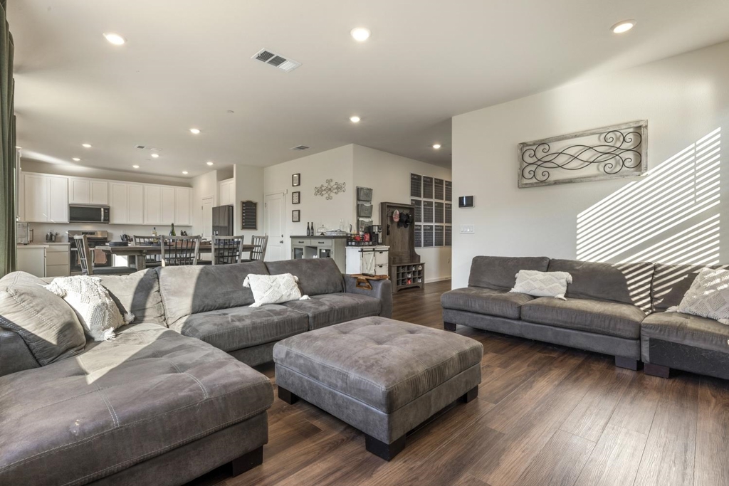 This beautiful and spacious Craftsman-style two-story home offers 4 bedrooms, 3 full bathrooms, and approximately 2,300 square feet of living space. Located in the vibrant Enclave at Crossroads West, this thoughtfully planned community features parks, scenic trails, and bike paths for year-round outdoor enjoyment. Conveniently situated just minutes from the Riverbank Sports Complex and a variety of shopping, dining, and entertainment options, the home provides the perfect balance of comfort and accessibility. With easy access to Highway 99, commuting to the Central Valley or the Bay Area is simple, and weekend getaways to Yosemite National Park are within easy reach. Inside, 9-foot ceilings and a light-filled great room create an open and inviting atmosphere. A first-floor bedroom offers flexible living options, ideal for guests, a home office, or multi-generational living. The contemporary kitchen showcases crisp white cabinetry, polished quartz countertops with elegant gold and gray veining, a spacious center island overlooking the great room, and a convenient pantry closet. Upstairs, you’ll find a cozy loft, a dedicated laundry room, and a generously sized primary suite featuring two walk-in closets. A must see!