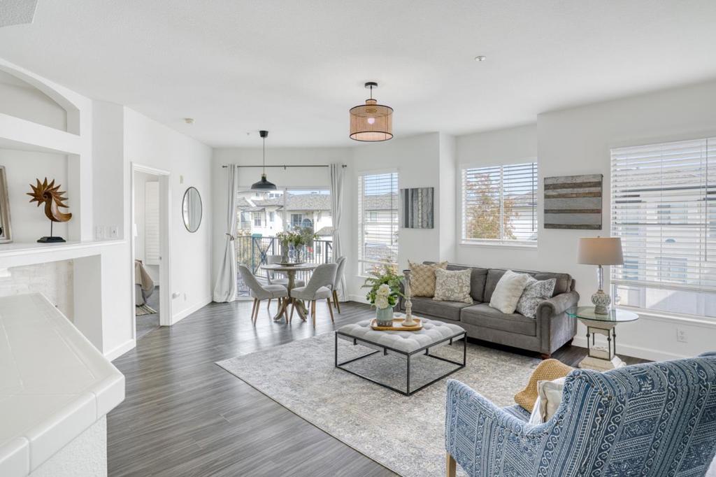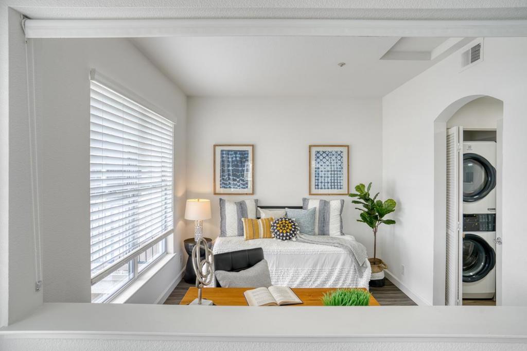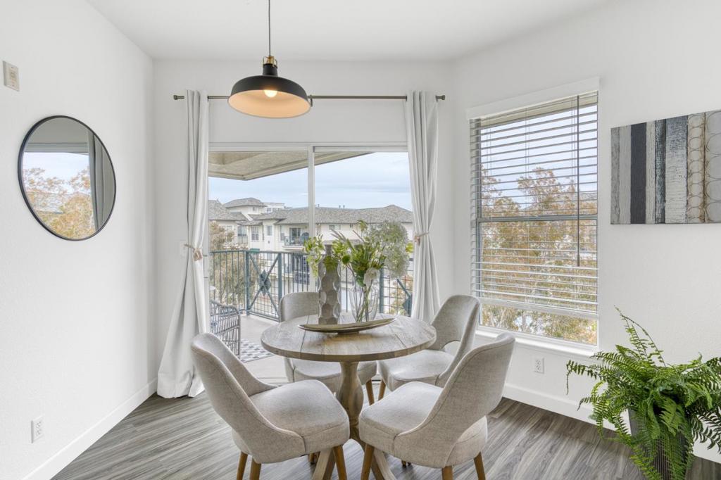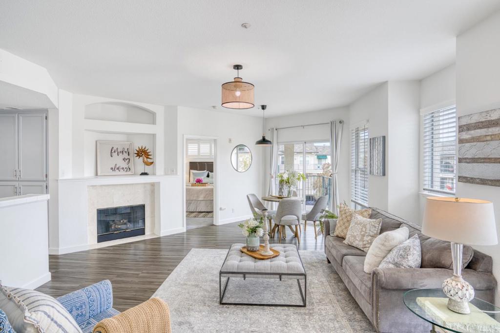 Top-floor privacy in the heart of Redwood City! This centrally located 1-bedroom, 1.5-bath condo offers 927 sq ft of comfortable, open-concept living with only one limited shared wall, thoughtfully positioned at the kitchen and closet for enhanced quiet. The updated kitchen features custom cabinetry, a brand new gas range, a dishwasher, and a refrigerator, flowing seamlessly into the light-filled living and dining area. Cozy up by the fireplace or enjoy the flexibility of a separate office/den, perfect for working from home or hosting overnight guests. Additional highlights include in-unit laundry, a spacious walk-in closet, a full bath with double sinks, a convenient half bath, and access to a fenced community pool. Located in the sought-after BelmontRedwood Shores Elementary School District and close to shopping, dining, the Redwood Shores lagoon, and commuter routes.Pet-friendly community. Top-floor living. Prime location. Move-in ready.