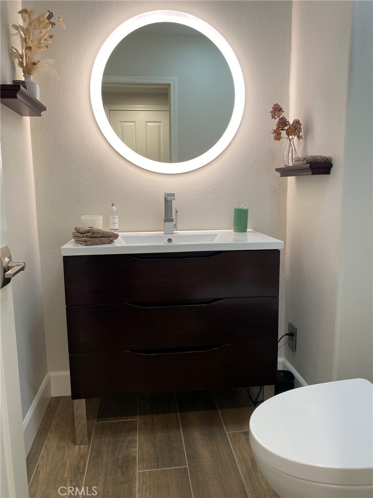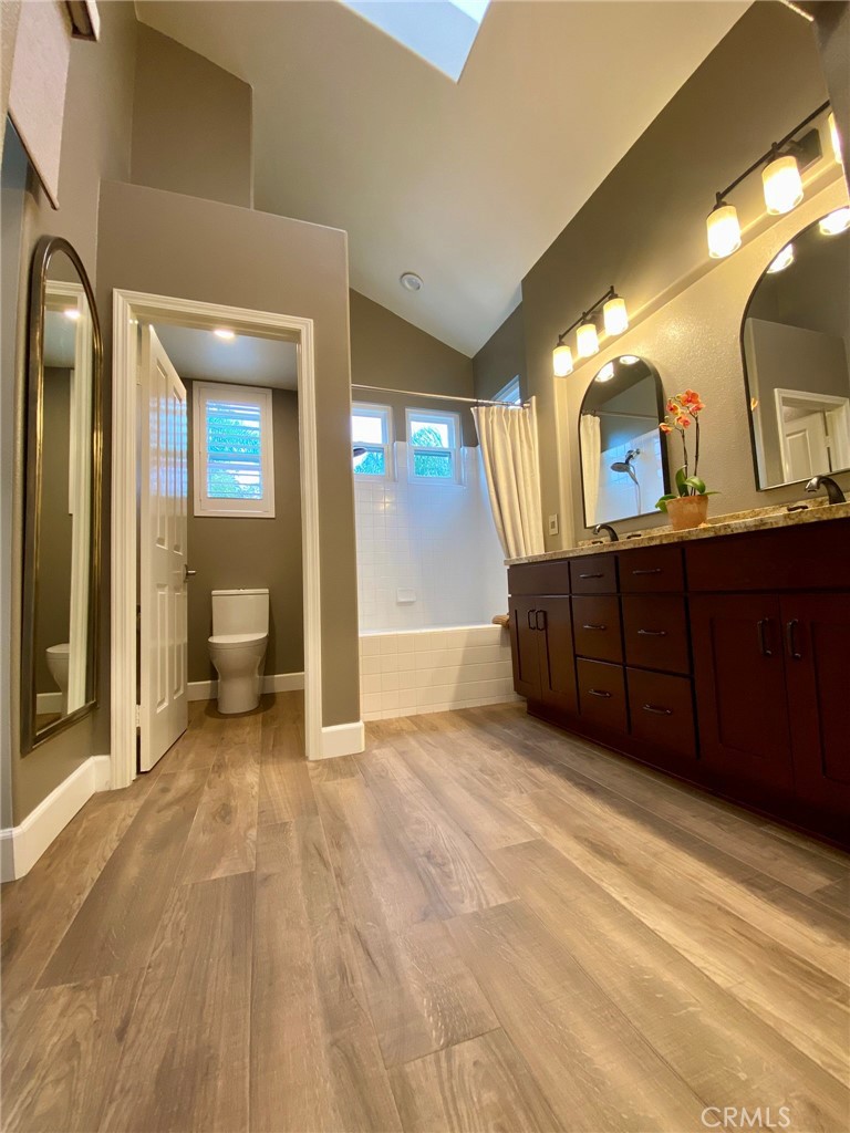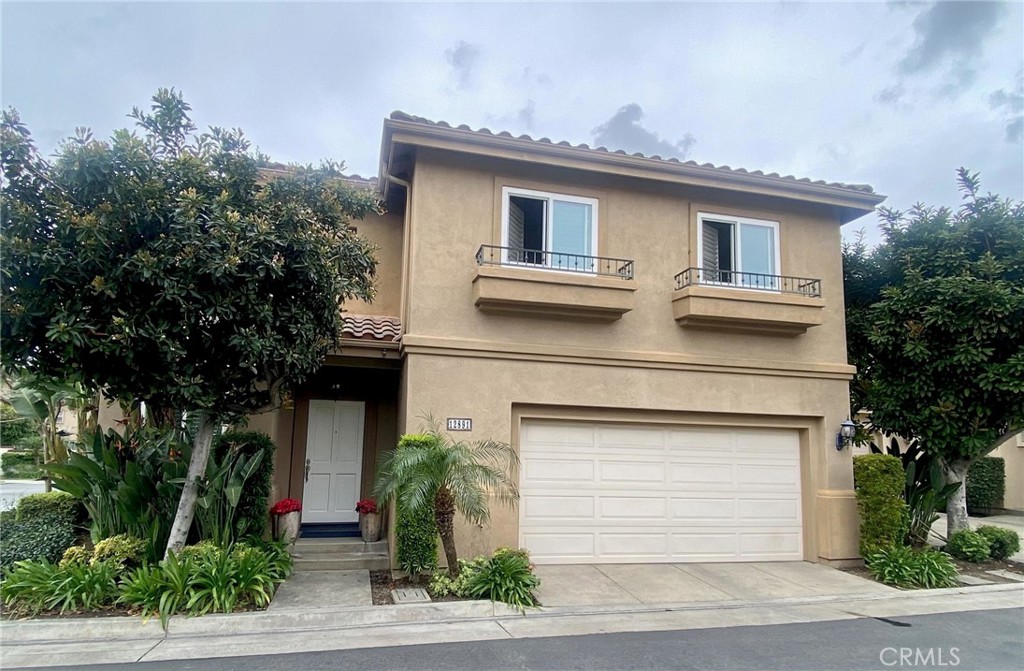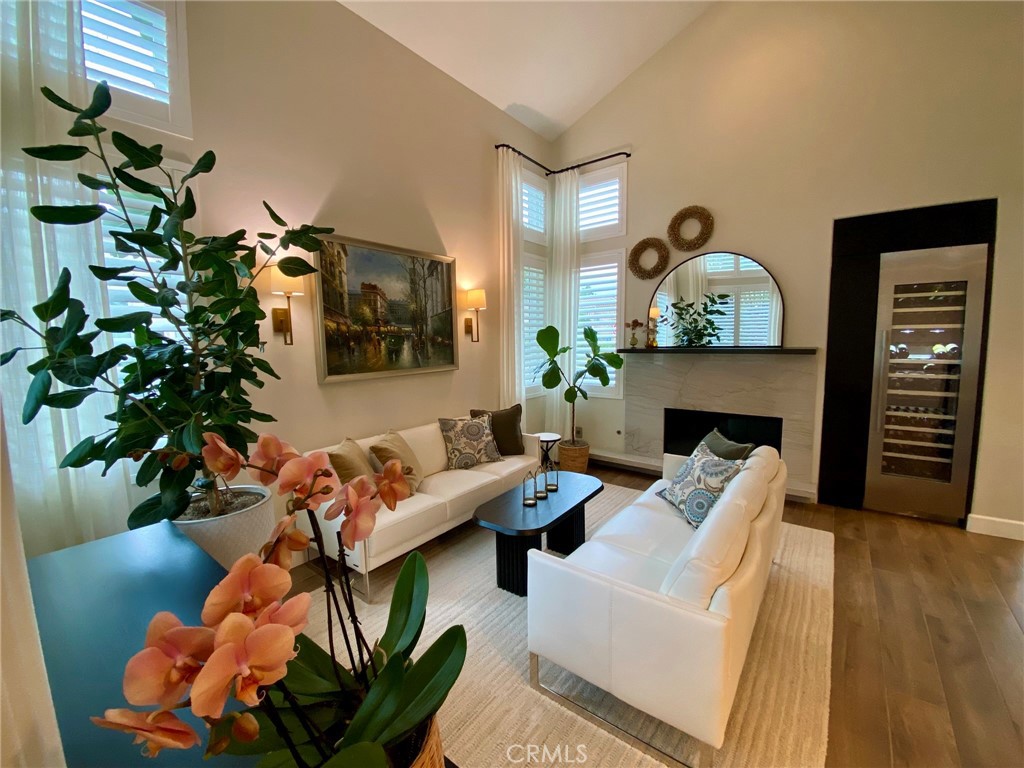 Absolutely Stunning 3-Bedroom Home with a Loft in the sought-after prestigious, gated community of Miramonte! Welcome to this pristine, beautifully upgraded residence nestled on a corner lot within the desirable Tustin Ranch Golf Course neighborhood. This exceptional home, lovingly cared for by its owners, blends charm, functionality, and showcases tons of upgrades, including the addition of a spacious loft, recessed lighting, newer windows and doors, premium wood flooring on the upper level. Step into the elegant living/family room featuring soaring vaulted ceilings, expansive windows with custom coverings, luxury tile flooring, high-end built-in Thermador wine cooler, welcoming fireplace with granite facing, raised hearth and wood mantel. The remodeled kitchen is a true centerpiece, boasting granite countertops and backsplash, a picture window above the sink offering views of the backyard, moveable granite island, lighted cabinetry with glass doors, a Bosch dishwasher, a Samsung oven, a built-in KitchenAid refrigerator, a stainless steel range hood, a cozy dining area, and a sliding panoramic door leading to a serene, private backyard—perfect for outdoor dining, entertaining, morning coffee or just simply relaxation in a fragrant tapestry of roses, azaleas, bougainvillea, and variety of fruit trees: orange, apricot, lemon, mandarin, and plum. Downstairs also features a tastefully updated powder room and a direct garage access. Ascend the custom wood and wrought-iron staircase to discover a spacious primary suite with trees view, vaulted ceilings and upgraded ensuite with dual granite vanities, a soaking tub with shower, a skylight, a motorized privacy roller screen, and a walk-in closet. Two additional bedrooms, an upgraded full guest bath, and a cozy loft complete the upper level. Additional highlights include high baseboards, plantation shutters, and new light fixtures throughout the home, smart programmable Nest Thermostat, a two-car attached garage with an epoxy flooring, lots of storage cabinets, and a wall garage door opener. Ideally situated just steps from the neighborhood resort-style pool & spa, and near award winning schools, Tustin Market Place for shopping, dining, entertainment, well-known Tustin Sports Park, and freeways, this exceptional home combines comfort, class and sophistication with a prime location. A must see! You will not be disappointed!