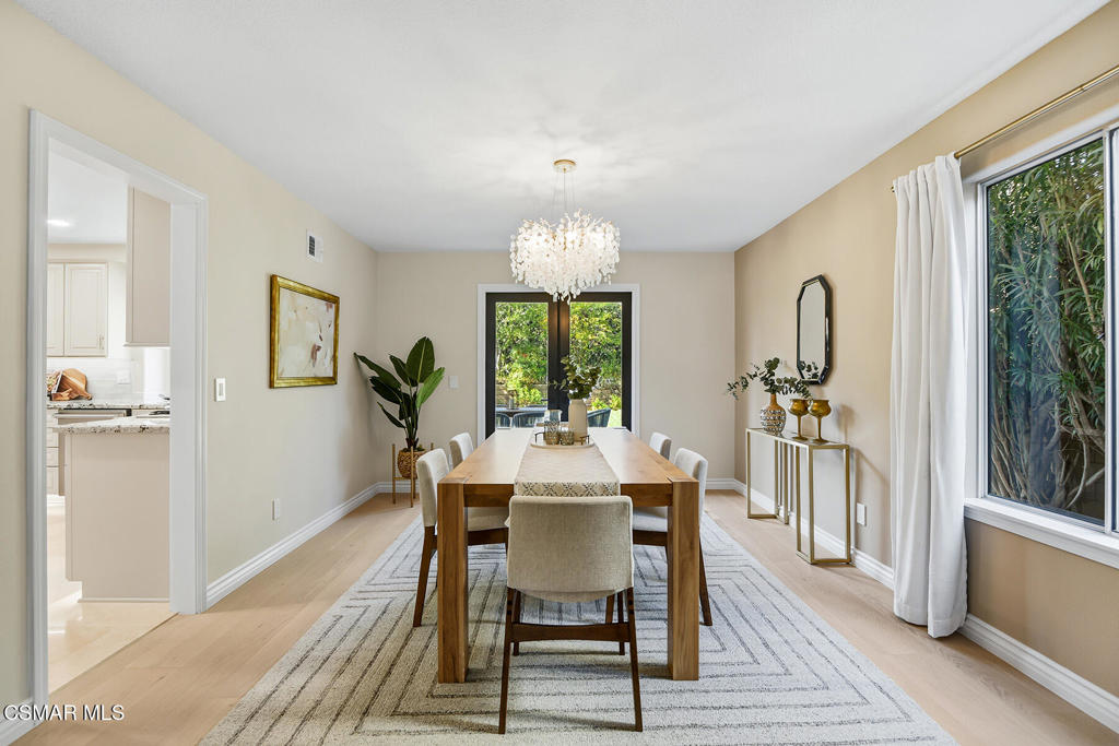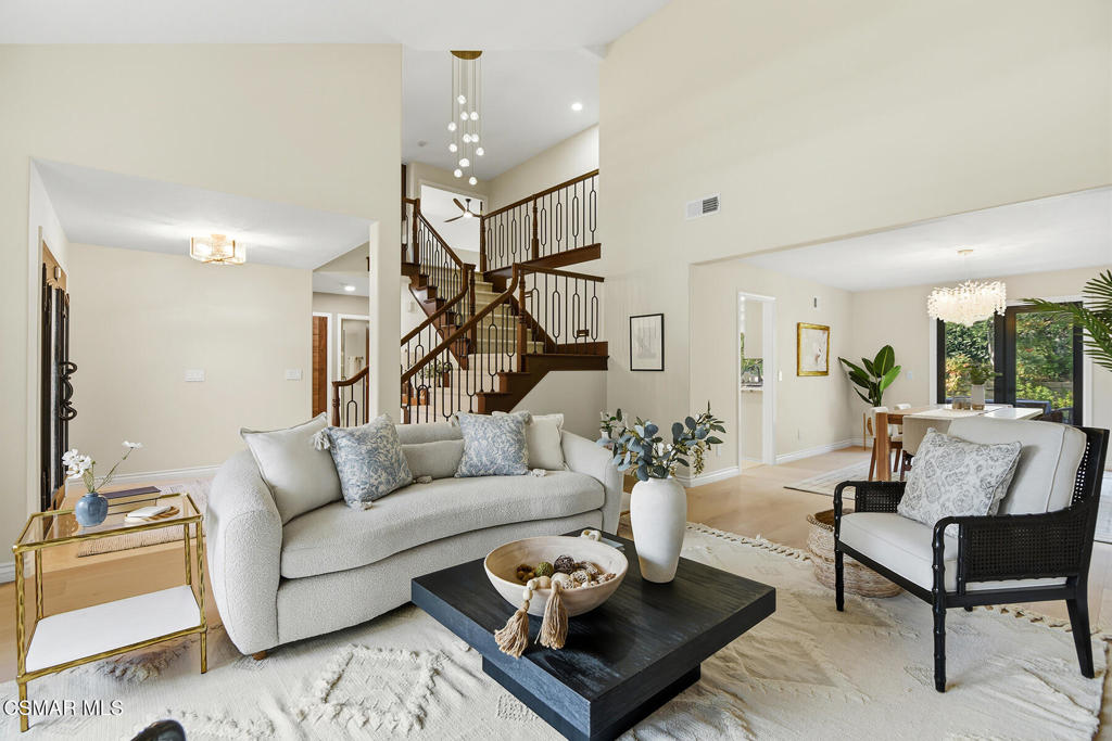 Prepare to be captivated by this stunningly remodeled masterpiece in Three Springs,one of Westlake Village's most coveted enclaves. Perfectly elevated for privacy, thishome blends sophisticated design with a versatile, open layout. Living Spaces: Step inside the entry via new double wrought iron doors to soaring ceilings and a sun-drenched living room anchored by a cozy fireplace. The adjoining formal dining room, featuring elegant French doors, flows seamlessly toward the backyard. For those needing flexibility, the main floor includes a dedicated office--easily converted into a fifth bedroom--conveniently located near a completely remodeled guest bathroom. The Chef's Kitchen: The heart of the home is a culinary dream, featuring All New High-End Viking Appliances: Double ovens, gas range, dishwasher, and microwave. Luxury finishes include an expansive granite center island, Zellige backsplash, pull-out drawers, and soft-close cabinetry. An intimate breakfast area opens to a spacious family room, complete with a wet bar, newly designed fireplace, and French doors leading to your private oasis. Spa-Like Primary Suite: The completely remodeled primary suite is a sanctuary of modern luxury, offering an updated private fireplace, a deep soaking tub, and a walk-in shower. Be captivated by the new white oak cabinets with leathered Taj Mahal quartzite counters. Storage is effortless with a massive walk-in closet featuring new built-ins. Premium Upgrades: Features include but are not limited to, brand-new white oak engineered hardwood flooring and baseboards. Every interior door was replaced with brand new solid core walnut doors, and there are all new lighting fixtures. All three bathrooms are fully remodeled, including new tile floors, vanities, lighting, bathtubs, shower tiles, LED-lit wall niches, and glass shower doors. Travel up the beautiful upgraded staircase to the three additional spacious bedrooms offering mirrored wardrobes and personalized storage solutions. Practicality meets style in the laundry room--complete with a laundry sink, new white oak cabinetry, leathered Taj Mahal quartzite, and shelves. Stunning Outdoor Areas: The tranquil backyard is a lush escape, featuring a covered patio for alfresco dining, manicured lawns, mature rose bushes and lemon tree. The oversized three-car garage with new garage doors, boasts newly finished epoxy floors and a pull-down attic for extensive storage. Located just moments from the Landing at Westlake, top-tier schools, and neighborhood parks, this home offers the ultimate Westlake Village lifestyle.