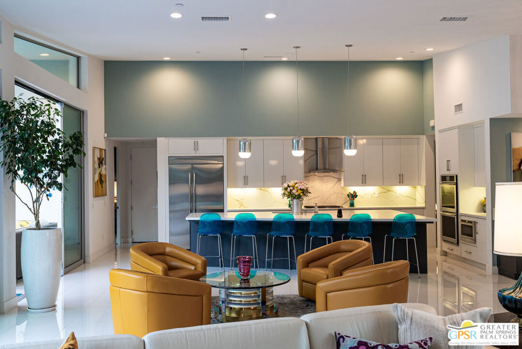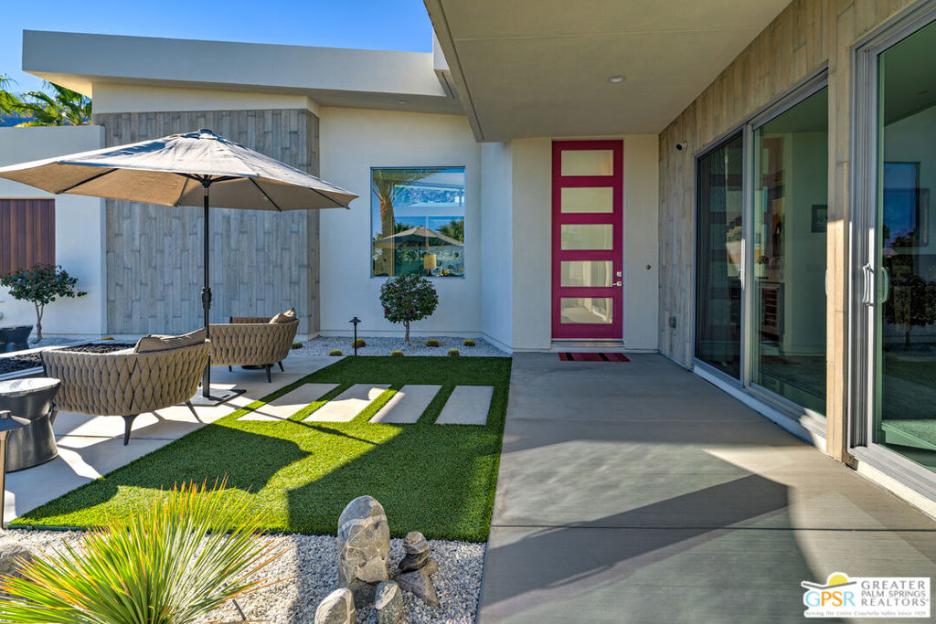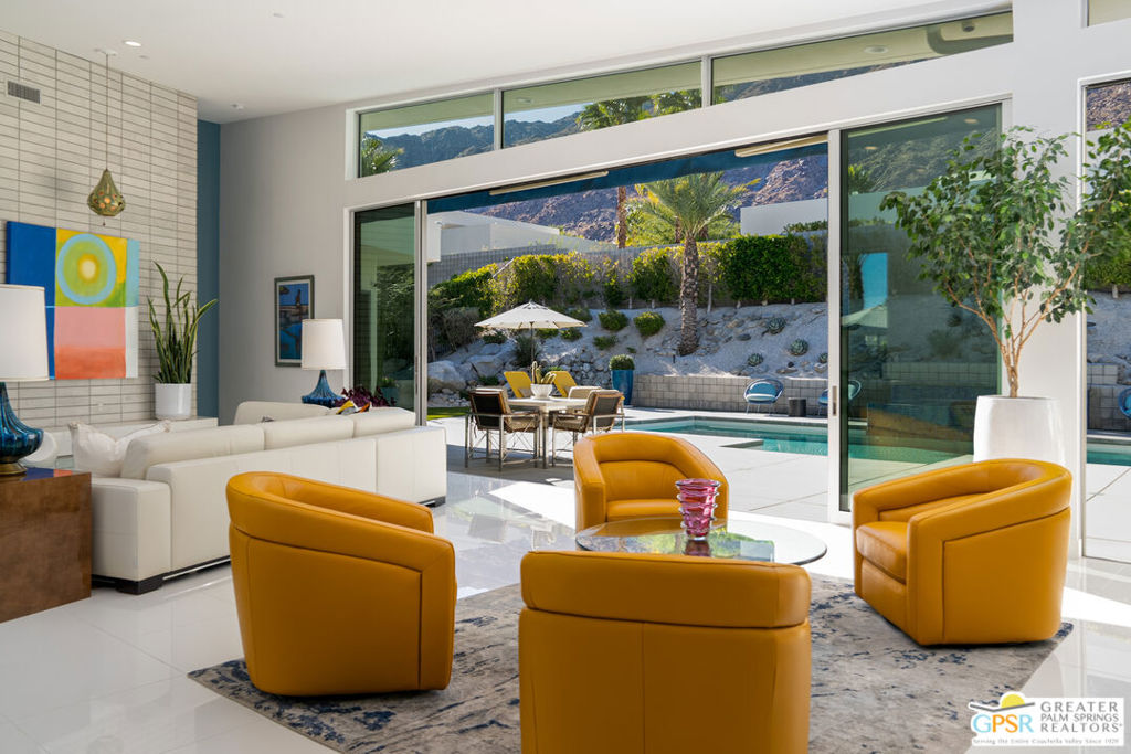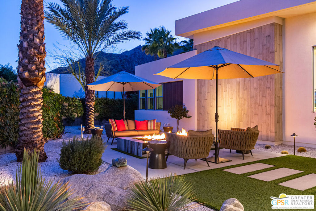 Welcome to Tennis Club's premier enclave of modern luxury homes in the community of Skye. This home brings a fresh interpretation of iconic mid-century style with transparent expanses eliminating the division of indoor and outdoor space. The floating butterfly roofline and walls of glass virtually disappear to maximize stunning mountain views. As you approach, enjoy the juxtaposition of clean architectural lines against a chaotic backdrop of mountain rock. Enter the private, front courtyard adorned with mature landscaping surrounding a central rectilinear stone covered fire pit for quiet mornings or cozy evenings or, literally, fireside chats. Inside, mid-century meets modern with the butterfly roof pushing ceiling heights to 14ft. The elevated hearth underscores the flush fireplace and a stunning wall of stone. With an open floor plan and enormous kitchen island, one has confidence and comfort in entertaining with ample space for both food & friends. Modern lacquer cabinets, quartz countertops and backsplash surround the suite of Jenn Air stainless steel appliances, gas cooktop and walk-in pantry. A nearby wet bar with wine refrigerator thoughtfully balances between kitchen and dining room. The formal dining room includes floating glass shelving, extensive storage, seemingly endless counter space, custom drapery. This room was made for holidays and special occasions. Thoughtfully designed, Skye homes were built with views and privacy as pinnacle passions. Inside the home, privacy extends to the bedroom suites with the primary bedroom located on opposite side of the home from the two additional guest suites. All three bedrooms enjoy direct exterior patio access and their own individual ensuite bathroom. The primary bedroom suite looks out towards the back yard and western mountain views. The luxurious primary bath includes dual vanities, a large glass-walled shower, freestanding soaking tub, dual water closets and spacious walk-in closet. A bonus room has been added as a home office or can be used as a fitness/yoga room. A retractable awning brings the indoors out for true year round enjoyment. Tiled in iridescent blue tiles, the infinity spa overlooks the expanded in-ground pool. Swing in the custom hammock and grill with the custom-built barbeque area with gas BBQ grill, bar seating, sink and refrigerator. Additional property features include: Exterior security camera system, 2-car garage with storage cabinets, tankless water heater, dual-zone HVAC, outdoor shower, and custom landscaping. Located downtown in the Tennis Club neighborhood, this home is a short walk or bike ride to Melvyn's, Johnny Costa, the Rowan, Orange Theory, the Lykken hiking trail, the Tennis Club and the O'Donnell Golf Club.