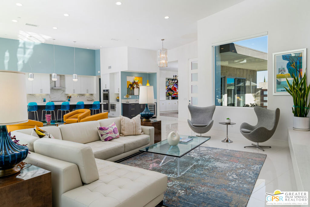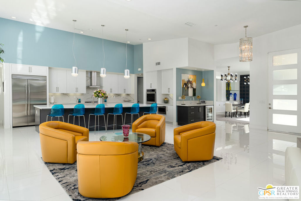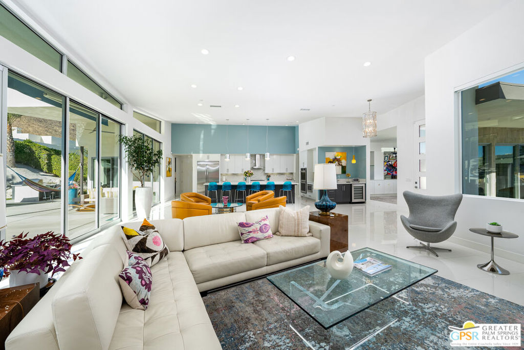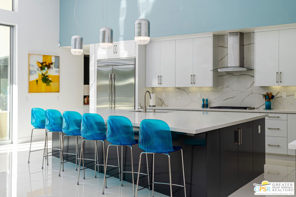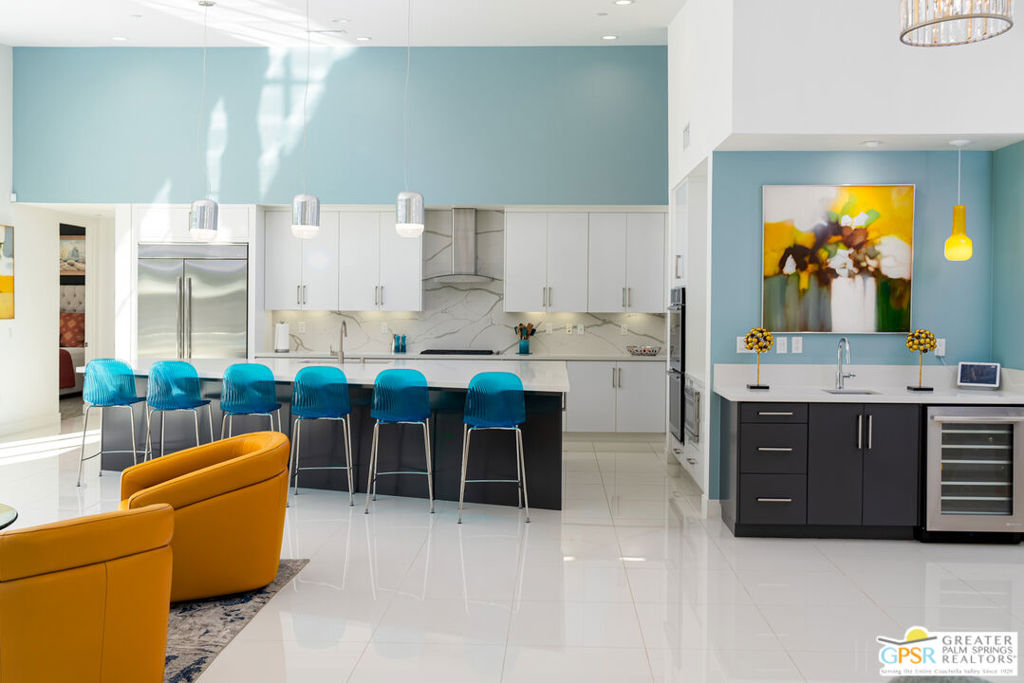 Welcome to Tennis Club's premier enclave of modern luxury homes in the community of Skye. This home brings a fresh interpretation of iconic mid-century style with transparent expanses eliminating the division of indoor and outdoor space. The floating butterfly roofline and walls of glass virtually disappear to maximize stunning mountain views. As you approach, enjoy the juxtaposition of clean architectural lines against a chaotic backdrop of mountain rock. Enter the private, front courtyard adorned with mature landscaping surrounding a central rectilinear stone covered fire pit for quiet mornings or cozy evenings or, literally, fireside chats. Inside, mid-century meets modern with the butterfly roof pushing ceiling heights to 14ft. The elevated hearth underscores the flush fireplace and a stunning wall of stone. With an open floor plan and enormous kitchen island, one has confidence and comfort in entertaining with ample space for both food & friends. Modern lacquer cabinets, quartz countertops and backsplash surround the suite of Jenn Air stainless steel appliances, gas cooktop and walk-in pantry. A nearby wet bar with wine refrigerator thoughtfully balances between kitchen and dining room. The formal dining room includes floating glass shelving, extensive storage, seemingly endless counter space, custom drapery. This room was made for holidays and special occasions. Thoughtfully designed, Skye homes were built with views and privacy as pinnacle passions. Inside the home, privacy extends to the bedroom suites with the primary bedroom located on opposite side of the home from the two additional guest suites. All three bedrooms enjoy direct exterior patio access and their own individual ensuite bathroom. The primary bedroom suite looks out towards the back yard and western mountain views. The luxurious primary bath includes dual vanities, a large glass-walled shower, freestanding soaking tub, dual water closets and spacious walk-in closet. A bonus room has been added as a home office or can be used as a fitness/yoga room. A retractable awning brings the indoors out for true year round enjoyment. Tiled in iridescent blue tiles, the infinity spa overlooks the expanded in-ground pool. Swing in the custom hammock and grill with the custom-built barbeque area with gas BBQ grill, bar seating, sink and refrigerator. Additional property features include: Exterior security camera system, 2-car garage with storage cabinets, tankless water heater, dual-zone HVAC, outdoor shower, and custom landscaping. Located downtown in the Tennis Club neighborhood, this home is a short walk or bike ride to Melvyn's, Johnny Costa, the Rowan, Orange Theory, the Lykken hiking trail, the Tennis Club and the O'Donnell Golf Club.