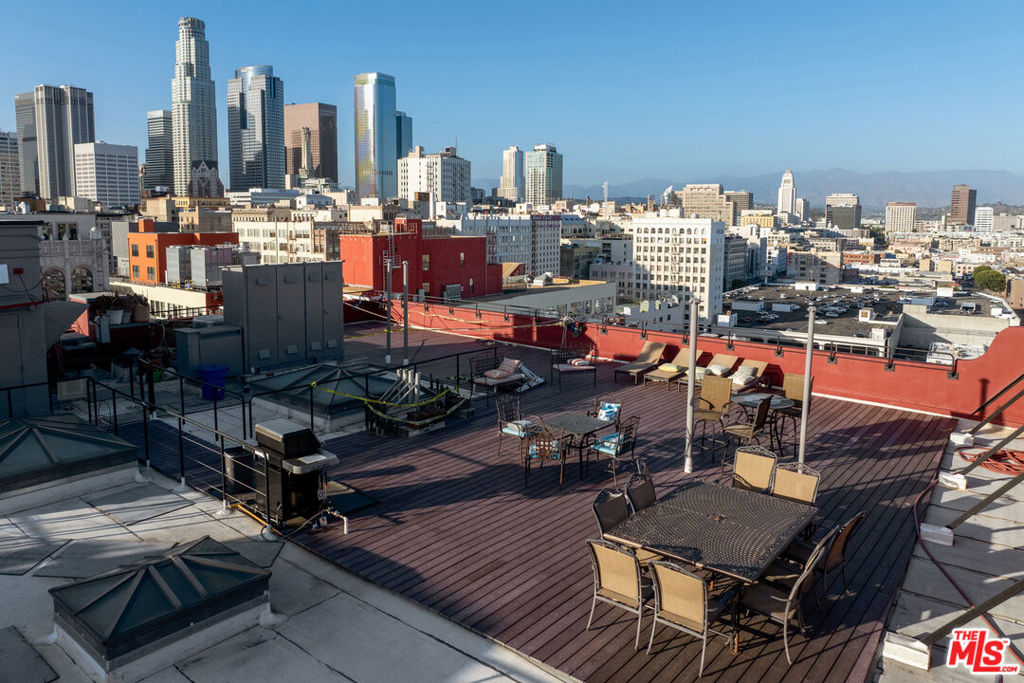 Welcome to your urban sanctuary in the heart of Downtown Los Angeles! This stylish live/work loft offers over 640 sq ft of open-concept living, blending modern design with historic character. Perched on the 10th floor, the space features soaring ceilings, polished concrete floors, and NINE massive industrial-style windows that flood the home with natural light while framing stunning city views. The sleek kitchen with minimalist cabinetry and designer lighting opens seamlessly into the spacious living and dining areas, perfect for entertaining or inspiring creativity. The bedroom nook offers privacy while maintaining the open loft feel, and the contemporary bathroom is finished with clean lines and modern fixtures. Washer and dryer located in the unit. A dedicated subterranean parking space within the complex. Santee Village amenities include the following: Rooftop sun deck, BBQ grills, gym, rooftop basketball court, driving range, rooftop pool and spa. Close to award winning restaurants, museums and the best coffee shops. A stone's throw away to the Apple Store, Whole Foods, the Metro Station, L.A. Live, Crypto Arena and freeways. In the center of the action, but quiet and peaceful in the loft itself. Listed on the National Register of Historic Places, the Textile Building is a former factory building, 12-story, 69-unit Gothic Revival Landmark. Listed under the Mills Act - earning homeowners generous savings on property taxes. The Mills Act automatically transfers to the new homeowner.