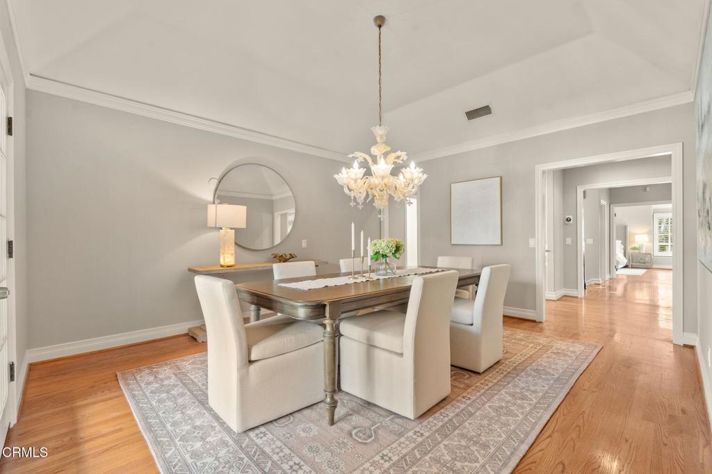Discreetly tucked behind privacy hedges and a gated cobblestone driveway, your elegant French Provincial manor awaits. Crowned with a handsome slate roof and imbued with European-inspired charm, 1565 S Oak Knoll Ave offers exquisite character and luxurious living in Pasadena's exclusive Oak Knoll neighborhood. Upon entry, the foyer creates a grand moment of welcome for all who visit with its soaring ceiling and painted fresco. The impressive nature of the home continues to reveal itself as each living space is generously sized and filled with abundant natural light. The formal living room is the picture of elegance with a 12ft ceiling, detailed fireplace, and wall of French doors that open to an expansive West-facing balcony spanning the entire length of the house. Whether hosting afternoon tea or unwrapping holiday presents near the crackling fire, you have the perfect setting. An equally spacious kitchen includes an island, breakfast area, and French doors to the balcony. Step outside and admire the beautiful backyard as birds sing and you sip your morning cup of coffee. A formal dining room with a wet bar and a luxurious primary suite with a walk-in closet and generous spa bath complete the main floor. Three additional bedrooms are found downstairs, each with outdoor access. For casual moments of connection, a large family room with a fireplace is perfect for game nights, movie marathons, and watch parties. The home's bottom level also includes a bonus room ideal as a den, office, or gym. In the backyard, you're immersed in the beauty of an idyllic French country garden where mature trees offer shade to blooming roses, winding paths, and pergolas. Dine al fresco on the peaceful back patio, savor a quiet afternoon with a good book, or play games of catch on the lawn. Conveniently located near Lacy Park, the Shops at Mission Village, and the world-class amenities of the Langham Hotel, you've found the perfect home to savor life's next chapter.