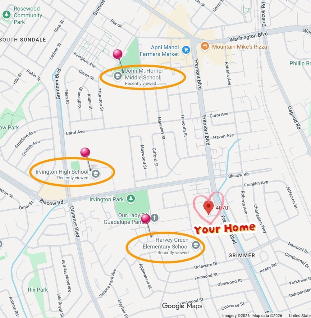 Rare opportunity to own this beautifully situated corner townhome in the highly sought-after Irvington district. A welcoming foyer opens to a spacious dining area that flows seamlessly into a formal living room, highlighted by a cozy fireplace—ideal for both everyday living and entertaining. The inviting kitchen offers a convenient pass-through window, enhancing functionality and connection to the living spaces. The main level also features an indoor laundry room and a half bath for added convenience. The primary suite boasts a vaulted ceiling and a custom walk-in shower. Two additional bedrooms provide direct access to a private balcony, while the fourth bedroom offers vaulted ceilings and a walk-in closet. Enjoy the convenience of an attached two-car garage and relax in the serene backyard, perfect for quiet enjoyment or refined entertaining. Low HOA dues further enhance the home’s appeal. Ideally located in a charming community just minutes from top-rated schools including Harvey Green Elementary, Horner Middle School, and Irvington High School. With easy access to shopping, parks, and major commuter routes such as Highways 680 and 880, this home is truly an exceptional place to call home.