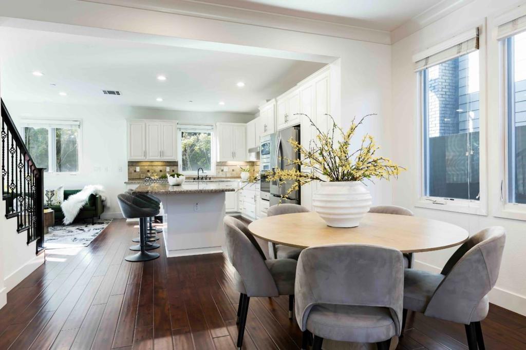 Idyllic living awaits in this bright 4-bedroom home in a coveted Palo Alto location. A paver pathway leads to the front door and opens to a two-level floorplan with rich wood floors, crown molding, and in-ceiling speakers. The main level features a sun-filled living room, a dining area, and a granite kitchen with a large island and stainless-steel appliances. Upstairs, four bedrooms include a primary suite with a soaking tub and step-in shower. The backyard offers a patio and lawn. Additional features include a laundry room, air conditioning, a two-car garage with epoxy flooring, and a tankless water heater. Walk to Mitchell Park, a short drive to California Avenue, and enjoy easy access to Highway 101 and Caltrain. Top schools include Fairmeadow Elementary, JLS Middle, and Gunn High (buyer to verify eligibility).