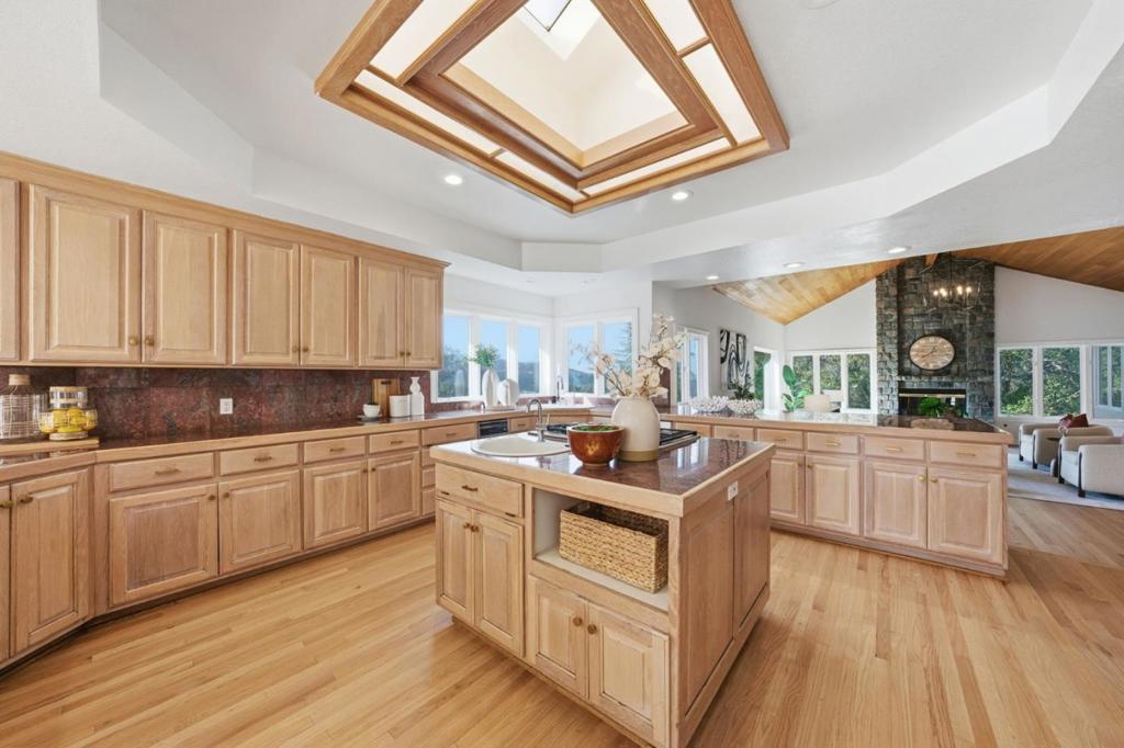 Experience breathtaking views and refined estate living atop the Cupertino hills at 22334 Regnart Road, a stunning 6,592 sq ft estate on 2.7 private acres offering scale, privacy, and commanding vistas. This 5 bed, 3.5 bath home features fresh interior and exterior paint, updated lighting and hardware, refinished hardwood floors, and a bright, open layout ideal for everyday living and entertaining. Grand formal living and dining rooms capture sweeping hillside views, while the vaulted family room with fireplace flows seamlessly into the chefs kitchen with Wolf cooktop, center island, and dining area, all framed by picture windows. An upstairs office provides a quiet work-from-home, and a spacious downstairs flex room offers versatile space ideal for a gym/media room. The primary suite is a true retreat with panoramic views, a private deck overlooking hills, and a spa-inspired bath with soaking tub, stall shower, and dual vanities. A three-car garage and sprawling grounds provide both functionality and presence. Just a 6-minute drive to top-rated Monta Vista High and close to Kennedy Middle, Stevens Creek Elem, Apple Park, NVIDIA, and Google, this exceptional hilltop estate offers luxury and convenience in one of Cupertinos most desirable settings.