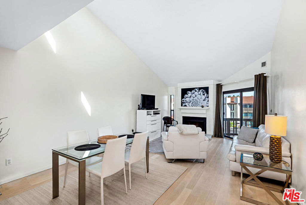 Highly desirable, sun-drenched 1-bedroom, 1.5-bathroom penthouse in the popular Villas del Rey, overlooking the tennis courts and pool. This spacious and extensively renovated unit features vaulted ceilings with skylights, white oak floors throughout, a fireplace, a private balcony, and an updated chef's kitchen with quartz countertops, stainless steel appliances, and a breakfast bar. Additional highlights include central air and heat, in-unit laundry, two-car tandem parking, and a secured room with a fenced storage area of approximately 40 square feet.Villas del Rey residents enjoy resort-style amenities including a sparkling pool, two spas, two saunas, tennis courts, a fitness center, ample guest parking, evening security, and a clubhouse with a full kitchen for events all just a half mile from the beach!
