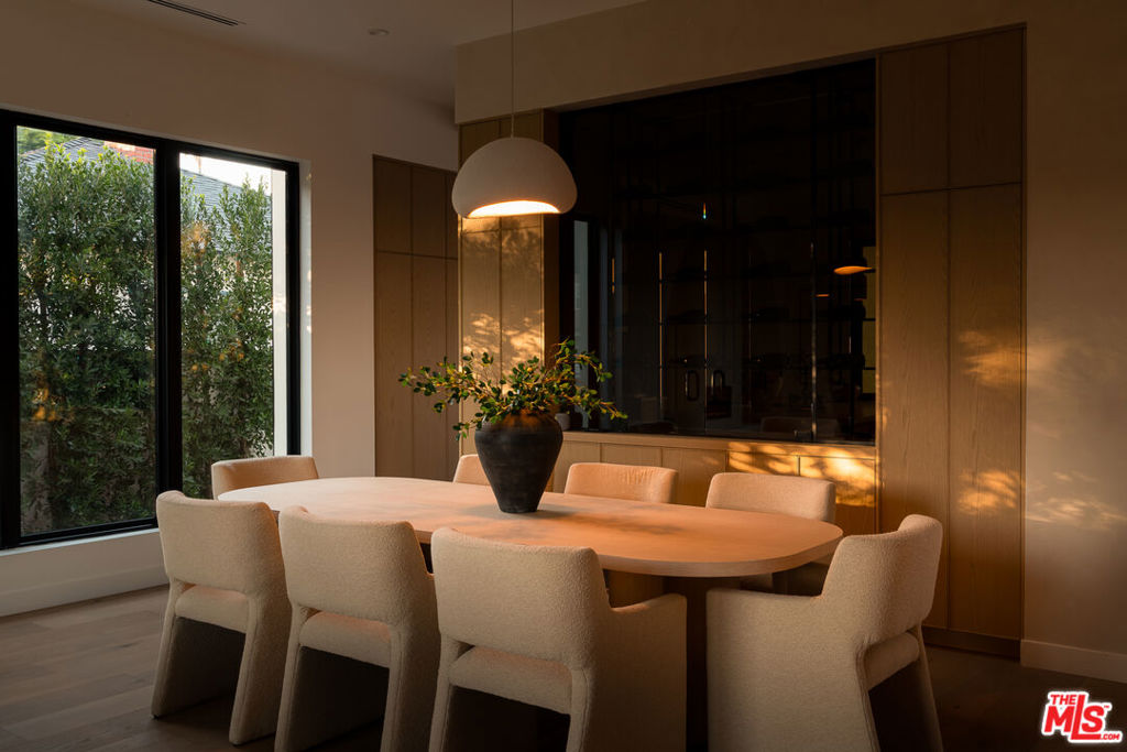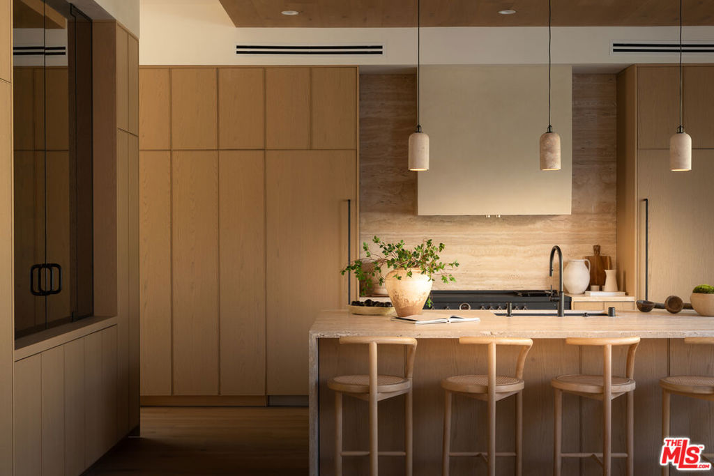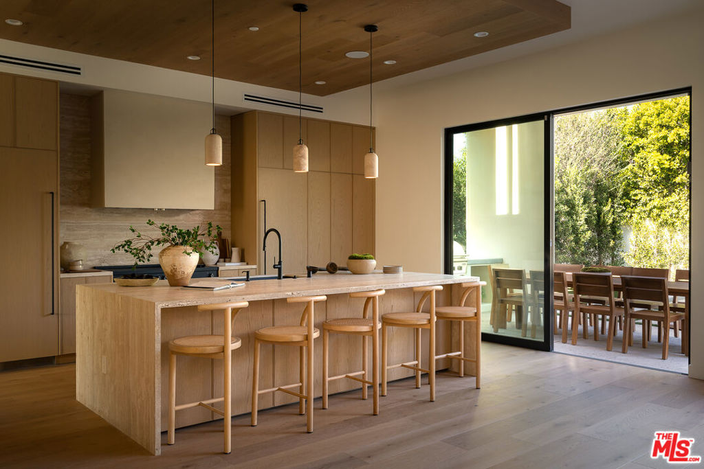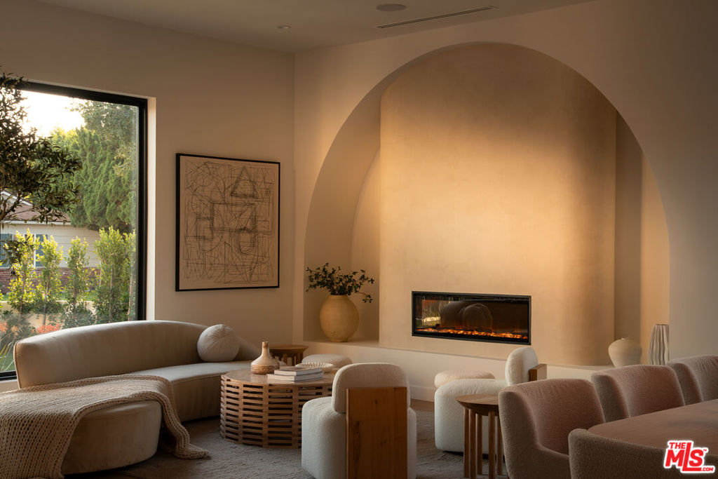 Set at the end of a tranquil cul-de-sac in one of Sherman Oaks' most coveted enclaves, this newly constructed estate is a masterwork of modern organic designwhere architectural artistry, exceptional craftsmanship, and timeless luxury converge. Encompassing approximately 4,758 square feet, the residence offers 6 bedrooms, 6 bathrooms, and an atmosphere of effortless refinement and privacy curated and built by Urban Culture Design and Development.From the moment you enter, the home reveals a meticulously curated interior defined by soaring ceilings, sculptural archways, museum-quality finishes, and a seamless blend of texture and light. Wide-plank French oak floors flow throughout, anchoring spaces enriched by bespoke millwork, custom lighting, and thoughtfully composed designer motifs that create a warm, sophisticated, and enduring aesthetic.At the heart of the home lies a chef-caliber kitchen that embodies both beauty and performance. Anchored by an oversized limestone island, the space is outfitted with a professional-grade Bertazzoni range, handcrafted custom cabinetry, and an architectural two-sided wine display that serves as a striking visual connection between the kitchen and living areas. Designed for both intimate gatherings and grand entertaining, the space opens effortlessly to a covered patio with al fresco dining and a built-in BBQ, blurring the lines between indoors and out.The main level unfolds with elegant fluidity, featuring expansive living and family rooms centered around artisan fireplaces with custom built-ins. Just beyond, a dedicated entertainment wing elevates the home's lifestyle experiencea private home theater with integrated surround sound, a chic lounge with wet bar and refrigeration, and a flexible wellness studio ideal for fitness, creative pursuits, or guest accommodations. A gracious downstairs ensuite bedroom offers additional versatility as a private office or guest retreat.Upstairs, the primary suite is a sanctuary of unrivaled luxury and serenity. This hotel-inspired haven features a smooth plaster fireplace, custom dry bar, dual boutique-style walk-in closets, and a spa-caliber bathroom wrapped in exquisite stone and bespoke finishes. A sweeping private balcony spanning more than 370 square feet overlooks the resort-style grounds, offering a peaceful, elevated escape.The backyard is a study in understated elegancebeautifully landscaped and designed for year-round enjoyment. A smart-controlled pool and spa, multiple lounging areas, and impeccably manicured greenery create a secluded outdoor retreat ideal for both entertaining and quiet relaxation.Further enhancing the home's exceptional quality are owned solar, whole-home surround sound, and a fully integrated security systemeach carefully selected to complement a modern, effortless lifestyle.Perfectly positioned near top-tier public, charter, and private schools, and moments from the best dining, shopping, and conveniences Sherman Oaks has to offer, this residence represents a rare opportunity to experience architectural sophistication and luxurious living at its absolute finest.