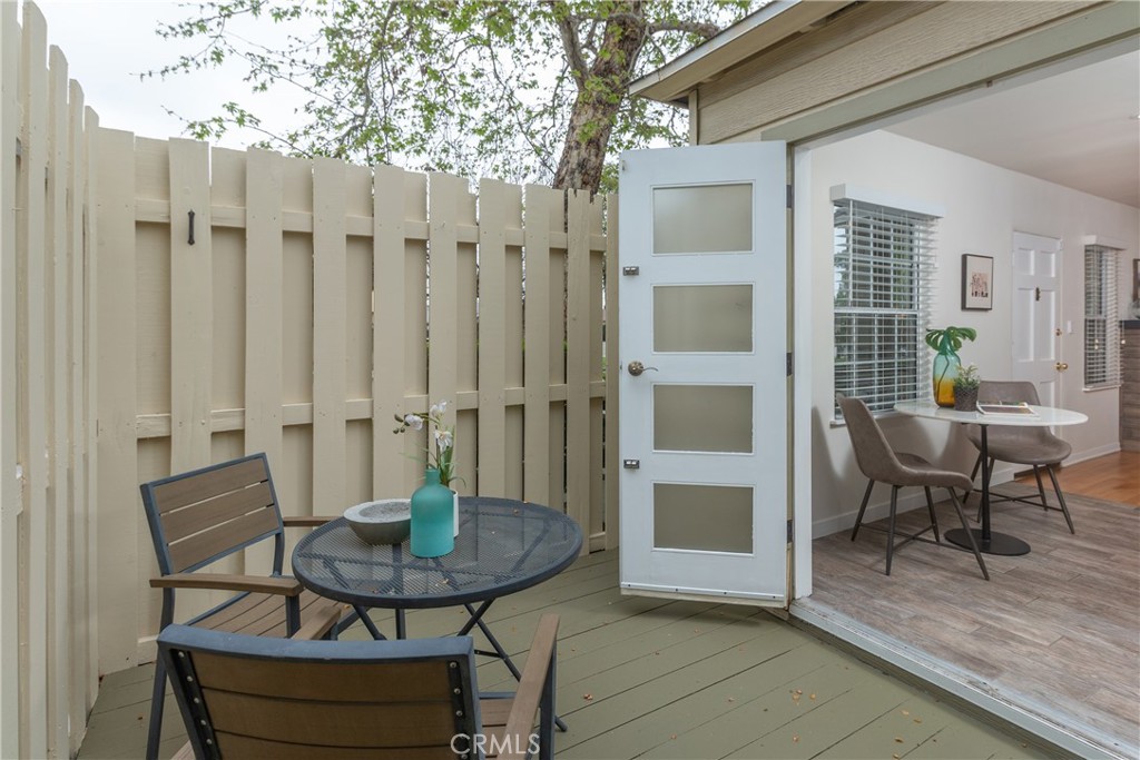 Tucked along a charming tree lined stretch of Keystone, this beautifully updated approximately 800 square foot residence offers two bedrooms and two baths, complemented by a detached approximately 400 square foot garage with a substantial bonus room above. Together, the existing structures present a compelling opportunity for a potential future approximately 800 square foot ADU conversion, creating exceptional flexibility for extended living, guest quarters, or income producing possibilities. From the moment you arrive, the home’s inviting curb appeal and classic front porch set the tone for what awaits inside, a thoughtfully refreshed residence designed for both everyday living and effortless entertaining. Step inside to a light filled living room anchored by a handsome fireplace, where natural light pours through multiple windows and highlights the home’s clean lines and timeless finishes. The space flows comfortably into the dining and kitchen areas, creating an easy, connected layout that feels both intimate and open. The kitchen is well appointed with crisp cabinetry, modern surfaces, and a functional center island that invites casual mornings and easy gatherings. Just off the kitchen, a quaint and private patio creates the perfect setting for morning coffee, al fresco dining, or a quiet glass of wine in the evening, a peaceful extension of the home that adds both charm and everyday livability. Both bedrooms offer a serene retreat and feature the rare luxury of direct private access to the backyard, creating a seamless indoor-outdoor connection and a sense of personal escape that is truly special. The primary bath showcases a beautifully remodeled walk in shower with contemporary finishes that feel elevated yet understated. Outdoors, the generous backyard offers space to relax, garden, or entertain beneath mature trees, with a spacious deck ideal for hosting or unwinding. The detached garage structure and upper level bonus room provide remarkable versatility for a work from home studio, creative retreat, guest accommodations, or future expansion, making this property as functional as it is charming. 211 South Keystone delivers character, flexibility, and thoughtful spaces that evolve with your lifestyle, all set within one of Burbank’s most desirable residential neighborhoods.