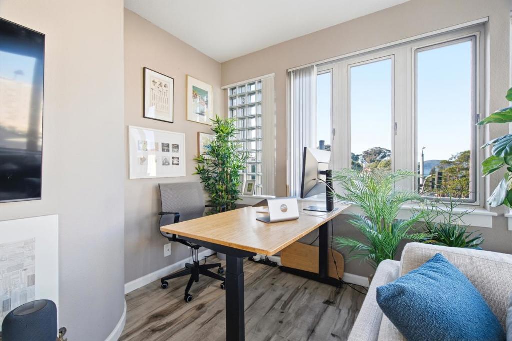 Welcome to this stunning 2-bedroom, 2-bath corner residence in a boutique elevator building in the heart of the Marina, a building with stunning Bay, Alcatraz, and Fort Mason views. This unit is filled with natural light, and an open floor plan ideal for modern living and entertaining. The gourmet kitchen offers sleek quartz countertops, stainless steel appliances, and ample storage, flowing seamlessly into the living and dining areas with a cozy fireplace. The spacious primary suite includes custom closets and a spa-inspired en-suite bath, while the second bedroom is generously sized and adjacent to a stylish second bathroom with a glass-enclosed shower. Additional highlights include laminate flooring, newer carpet in bedrooms, in-unit washer and dryer, central heating & cooling, secure 1 car parking, private storage, and a rooftop with stunning views. Prime Marina location close to Fort Mason, Marina Green, and top dining.
