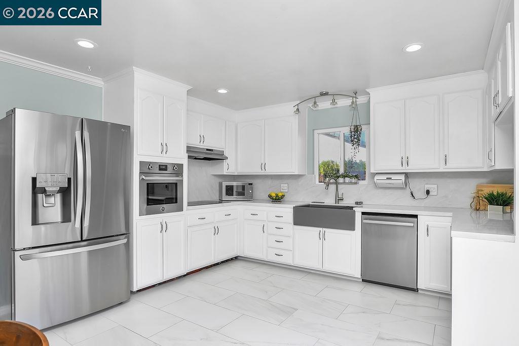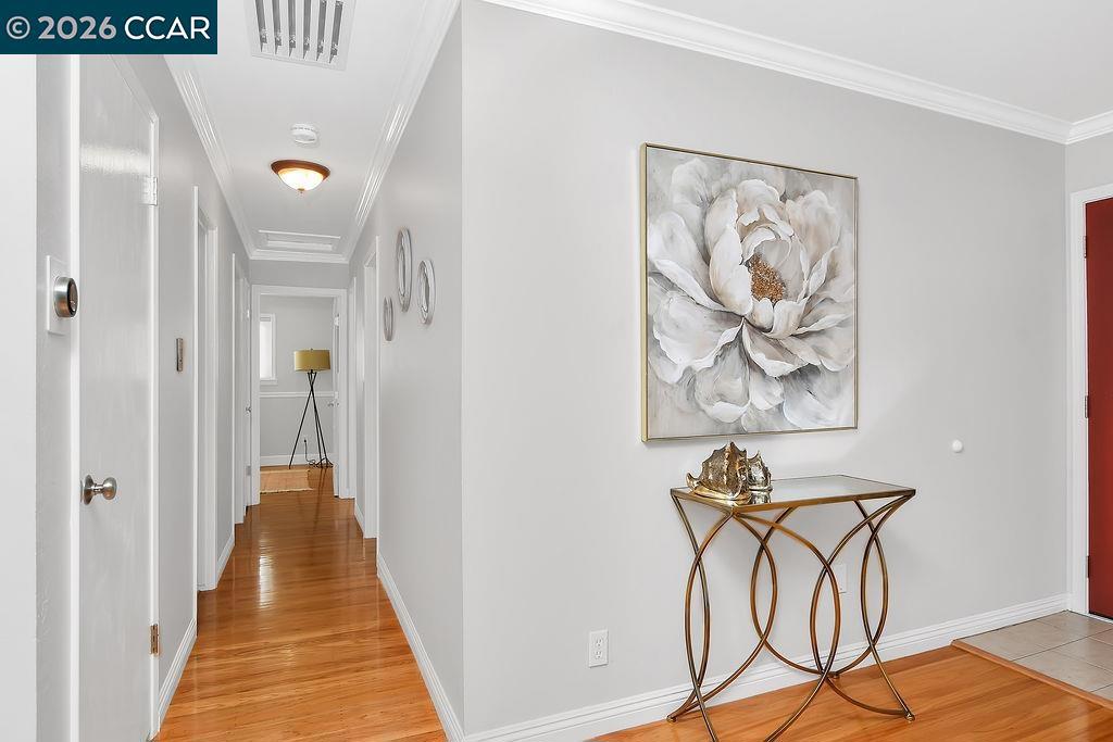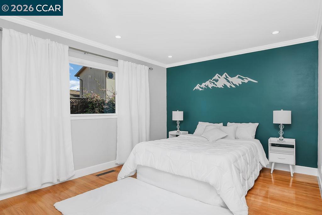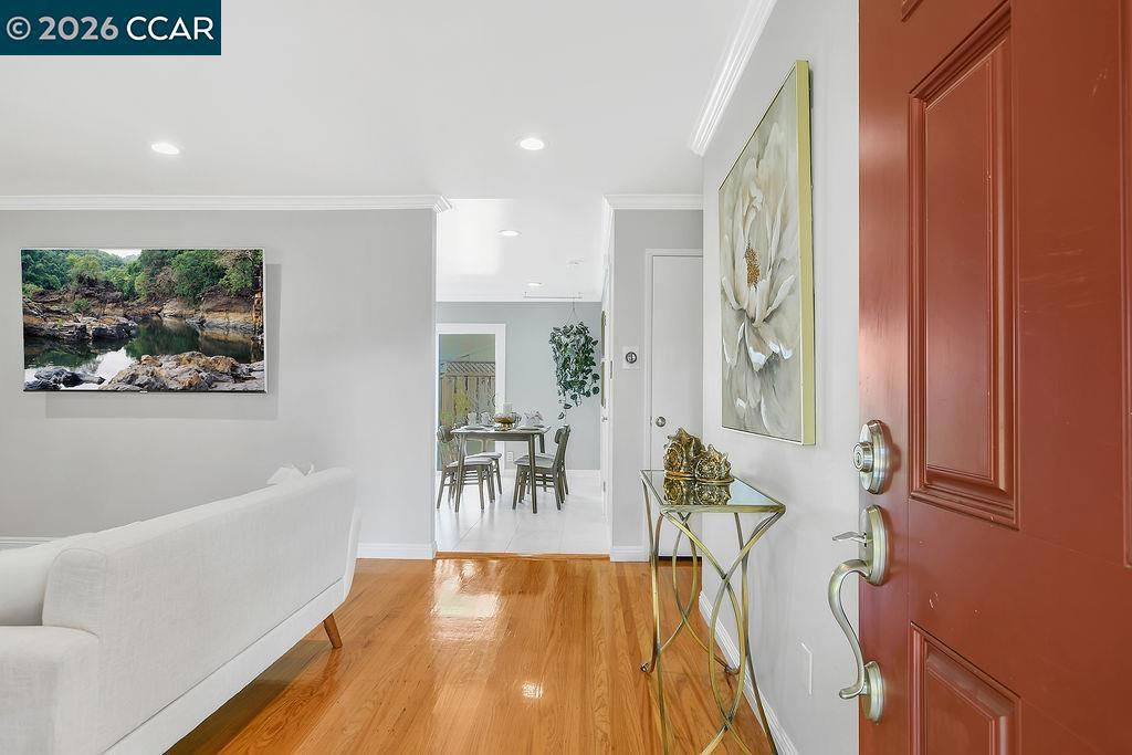 Nestled in a coveted Newark location, this home radiates pride of ownership from every corner. Step into the heart of the home: A beautifully refreshed kitchen boasting new sleek quartz countertops/backsplash, all complimented by sparkling stainless steel appliances. The primary bathroom is a serene retreat, featuring thoughtful updates, while the home gleams with hardwood floors, elegant crown molding, recessed lighting, and a fresh coat of interior paint. The modern comfort extends to a tankless water heater for endless hot water, a convenient laundry room with a newer washer & dryer, and a newer (2023) furnace. Outside, the lush front/back yards are a fruit lover's paradise, offering pomegranate, hybrid lemon, lime, dwarf blood orange, Blenheim apricot, two fig varieties, pineapple guava, and a bounty of boysenberries, blackberries, and gooseberries. Don't miss the innovative full garage door screen with a central sliding screen door - perfect for enjoying fresh breezes. With quick access to highways 84 and 880, and just a short walk to top schools, parks, shopping, and eateries, this home perfectly blends convenience and charm.