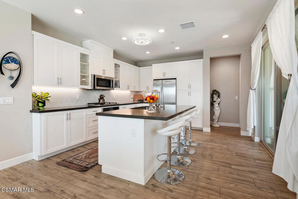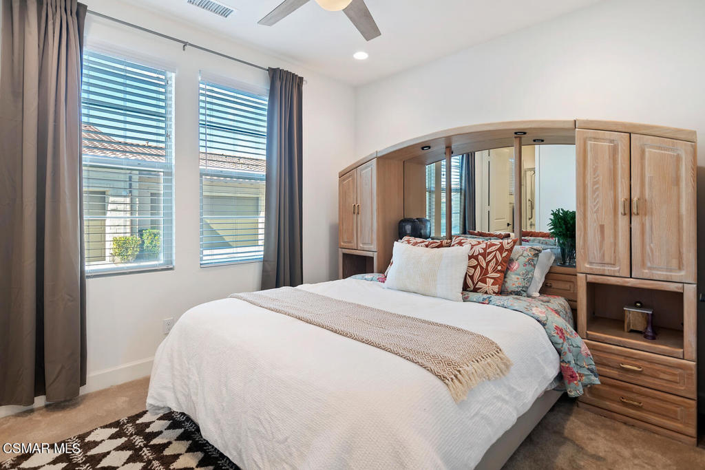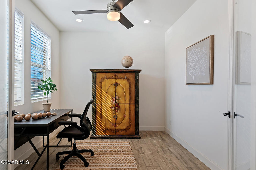 Ideally located on an elevated, corner lot in a prime location within the Pomelo neighborhood of the highly desirable 55+ gated community of The Grove, this beautifully designed 3-bedroom, 2.5-bath home offers 1,594 sq. ft. of modern, low-maintenance living. The open layout is filled with natural light and features wood-like ceramic tile flooring throughout the main living areas. A spacious chef's kitchen anchors the home with stainless steel appliances, quartz countertops, and a large island with breakfast bar--perfect for everyday living and entertaining. The private backyard is thoughtfully designed with a California room, raised planter beds, artificial turf, creating an ideal indoor-outdoor retreat. The primary suite features a large walk-in shower, dual sinks, a bidet and a generous walk-in closet. The secondary bedroom is en-suite with a tub/shower combination, while the third bedroom--currently used as an office without a closet--offers flexibility for your lifestyle. Additional highlights include indoor laundry, ceiling fans in every room, a tankless water heater with instant hot water and an attached 2-car garage with Tesla charger. Residents enjoy resort-style amenities including pickleball courts, a massive putting green, pool and spa with cabanas, clubhouse, dog parks, BBQ areas, state-of-the-art fitness center, and library.