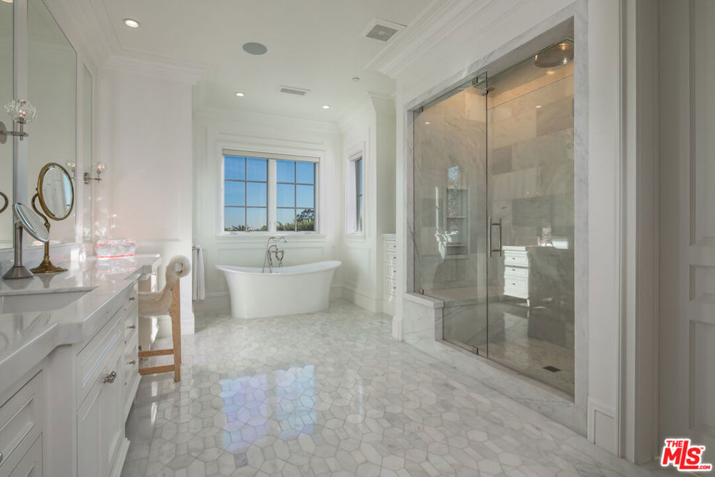 Situated on an over 18,000-square-foot lot in the heart of the Riviera, this stunning traditional estate offers over 10,000 square feet of living space, blending timeless architecture with today's open-concept indoor-outdoor lifestyle. Designed for exceptional flow and abundant natural light, the home lives beautifully for both everyday comfort and effortless entertaining and features an elevator to all three levels. On the main level, formal living and dining rooms are complemented by an open kitchen and family room; the true center of the home. Walls of pocket doors open directly to the backyard, creating seamless indoor-outdoor connection with views over the pool and grounds. The expansive chef's kitchen features generous bar seating, ample prep space, a bright breakfast area, and a windowed nook overlooking the yard, while a substantial butler's pantry supports entertaining at any scale. A mudroom and laundry room off the garage and an ensuite bedroom, currently used as an office, complete the level. Upstairs, the bedroom level is exceptionally bright, with an abundance of natural light throughout. The luxurious primary suite offers dual walk-in closets and two generously sized bathrooms. An adjoining room, currently used as an office, connects directly to the primary suite and includes its own bathroom; this space can easily be separated to function as an additional bedroom. Two more ensuite bedrooms complete the upper level, offering flexibility for a total of three or four bedrooms upstairs. The light-filled lower level is dedicated to recreation and wellness, featuring a large rec room, an impressive two-tier theater, a fully outfitted gym with steam shower and oversized sauna, a bar, and an expansive wine room with capacity for hundreds of bottles. An additional ensuite guest suite with separate entry provides ideal accommodations for visitors. Outside, the resort-style backyard is beautifully landscaped and designed for entertaining, with a sparkling pool and a pool house that opens directly to the pool and includes a full bathroom. Private, serene, and turnkey, this over 10,000 square foot Riviera estate presents a rare opportunity for refined California living in one of the most sought-after neighborhoods in all of Los Angeles.