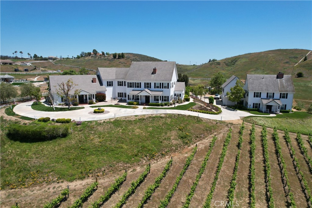 Nestled in the picturesque community of La Cresta, this exceptional property boasts three classic traditional style homes totaling 9222 square feet of square footage and is situated on a sprawling five-acre estate. The property's serene setting combined with its stunning architecture and vineyard views creates a truly unique and desirable living experience. This is a unique opportunity for a family compound, corporate retreat or rental income. The home sits atop a gentle hill covered in almost three acres of Pinot Grigio and reached by a sweeping driveway past the gated entry. Each home is a stand-alone residence and offers a blend of modern convenience and classic charm. All three residences offer three bedrooms, two with expansive bonus rooms and full-service kitchen with open floor plans. A beach type setting offers a fenced in pool, sand, pergola and three oversized umbrellas that are permanent fixtures. Three covered structures house the horses which includes an arena and room to grow. Whoever said, "you can't have it all," obviously never saw this property. If these attributes check off your boxes, please see this charming country estate.
