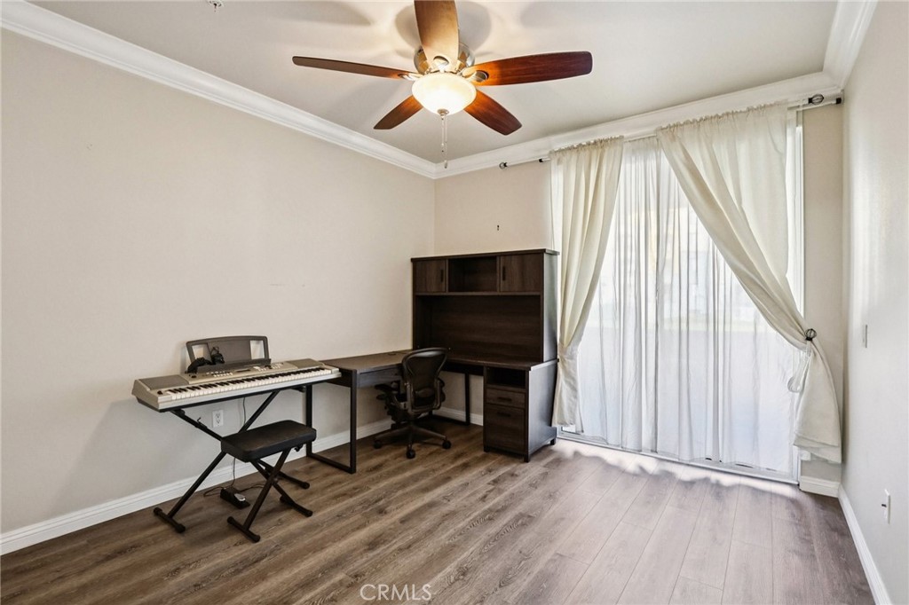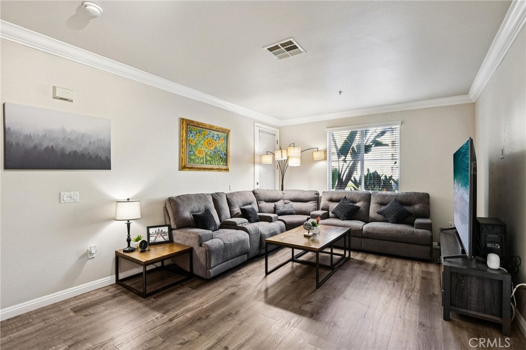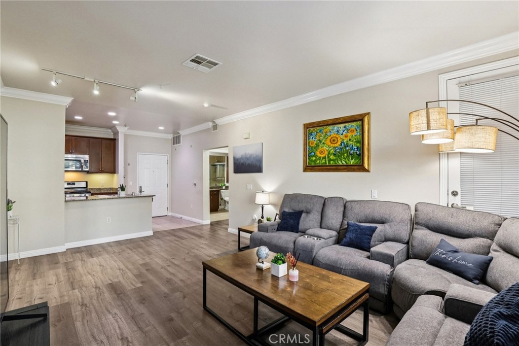 Welcome to 1154 Scholarship, a desirable ground-level residence in the sleek mid-rise community of Avenue One. Ideally situated in the heart of Irvine’s business and entertainment district, residents enjoy walkable access to shopping, dining, and nearby office buildings—making it easy to live, work, and play all in one vibrant location. This thoughtfully designed 1,052 sq.ft. home offers 2 bedrooms and 2 bathrooms with a spacious open-concept layout. The kitchen features European-style cabinetry, stainless steel appliances, and a convenient laundry closet with washer and dryer hookups. Gorgeous laminate flooring, neutral-tone paint, and crown molding create a warm and inviting atmosphere throughout the main living areas. Both bedrooms are generously sized, each with its own private bathroom, ceiling fan, and ample closet space. Enjoy seamless indoor-outdoor living with balcony access from both the living room and secondary bedroom. Avenue One offers an impressive array of resort-style amenities, including a sparkling pool and spa, fitness center with indoor basketball court, BBQ and picnic areas, clubhouse with meeting rooms, tot lot, and more. The home includes two secured tandem parking spaces, along with additional guest parking. An exceptional opportunity for a first-time buyer, downsizer, or investor seeking a prime Irvine location.