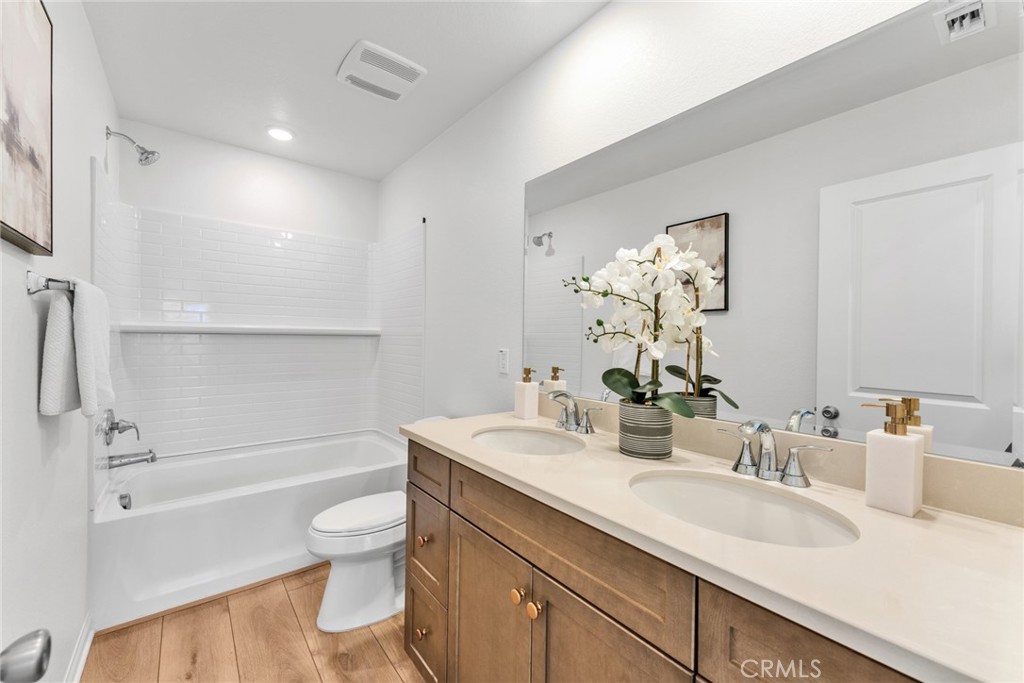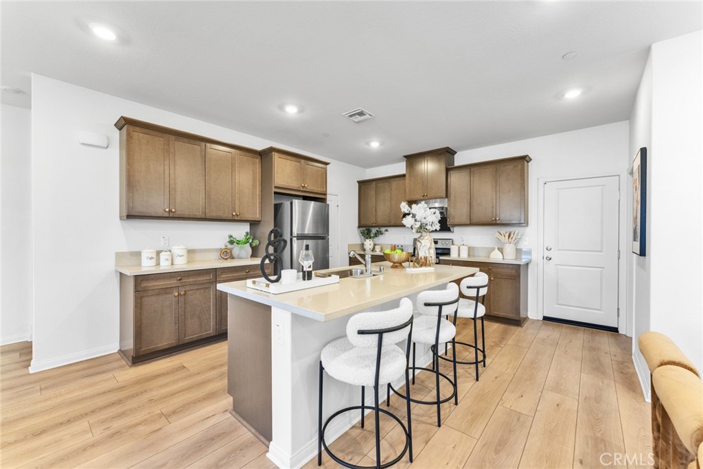 Welcome to Monet at Chino Preserve, where modern living meets unmatched convenience. Perfectly situated directly across from the brand-new Town Shopping Center, this stylish new community offers a vibrant lifestyle just steps from dining, shopping, and daily essentials.This thoughtfully designed residence features approximately 1,595 sq ft of living space with 9-foot ceilings, 3 bedrooms, and 2.5 bathrooms. The open-concept layout flows beautifully into a spacious gourmet kitchen with sleek dark cabinetry, quartz countertops, and Luxury Vinyl Plank flooring throughout the first floor, creating a bright, clean, and contemporary atmosphere ideal for both entertaining and everyday living.Enjoy resort-style community amenities including a pool and spa, clubhouse and meeting center, pickleball court, BBQ and picnic areas, and a neighborhood park—perfect for relaxation and recreation. The home is located within the desirable Cal Aero and Legacy Academies (K–8) and the highly sought-after Chino Hills High School district.Buyer to assume the existing solar lease. Don’t wait—own your dream home in Chino Preserve before this rare opportunity is gone!