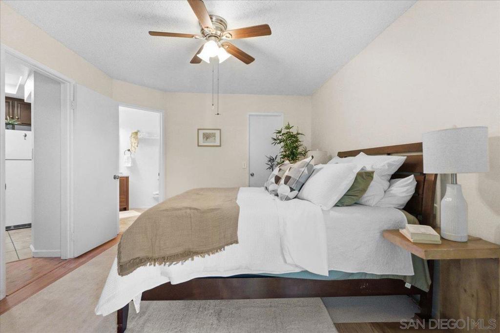 Welcome to this well-maintained 2-bedroom, 2-bath end-unit condominium in the desirable Ranchwood community of Spring Valley. Offering 916 sq ft of thoughtfully designed single-level living, this residence provides enhanced privacy with only one shared wall and an abundance of natural light. The functional floor plan flows seamlessly from the bright living area to a covered balcony—perfect for relaxing in the peaceful surroundings. The kitchen includes in-unit stacked washer and dryer, and recent updates make the home move-in ready. Both bedrooms are comfortably sized, with the primary suite offering private access to the outdoor space. This community feels like living at a country club—without the hefty membership dues. Residents enjoy a pool, spa, tennis courts, BBQ areas, a small park-like green space, and mountain views throughout the complex. The setting is quiet, serene, and well maintained. HOA dues include water, trash, and common area maintenance for added convenience. Covered parking with dedicated storage is included. Centrally located near shopping, dining, parks, and major freeways, this home offers privacy, comfort, and exceptional amenities in an established Spring Valley neighborhood. Parking spot 33