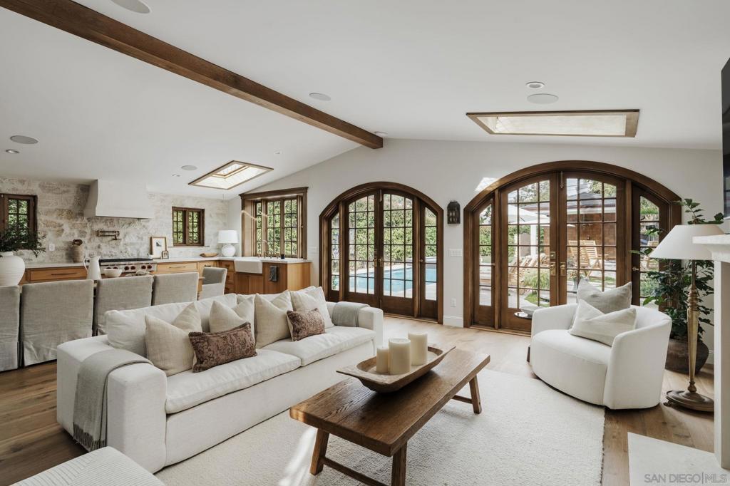 Tucked along one of Coronado’s most coveted tree-lined streets, this masterfully reimagined Craftsman blends timeless coastal charm with the confidence of modern construction. Set on a generous 6,400-square-foot lot in a quiet, storybook stretch of the Village, this cedar-sided residence offers a rare sense of privacy, scale, and history, just moments from the beach, parks, and everyday Village life. Rebuilt with intention and taken fully down to the studs during its 2025 renovation, the home was thoughtfully reinforced from the foundation up and designed to endure. A new roof with copper flashing, all-new plumbing and electrical, a copper-wrapped foundation, and custom alder windows and doors reflect a level of craftsmanship rarely found. Inside, rich architectural details include wood-beamed ceilings, custom leaded-glass skylights and windows, reclaimed wood accents, restored hardware, and bespoke lighting adding warmth and depth throughout. The kitchen overlooks the well-manicured yard and is built with high end appliances, limestone backsplash, bar sink, pantry, and hand-selected, timeless finishes. French doors invite seamless indoor-outdoor living, opening to a tumbled limestone patio with a solar-heated saltwater pool and spa, gas firepit, outdoor dining area, and space for grilling. The main level includes two ensuite bedrooms, a hideaway room tucked behind a bookcase, a laundry room, and powder room with bidet, ideal for entertaining. Upstairs, the primary suite features a private balcony, separate entrance, its own laundry, an oversized soaking tub and a walk-in closet. Wired for audio inside and out, fully integrated for security, and enhanced with intercom access at the gated entry with gas lanterns, the home effortlessly balances old-world style with today’s high-tech necessities. The cedar-lined garage features French doors, French oak floors, vaulted ceilings, board-and-batten walls, and its own half bath—creating endless possibilities as a studio, gym, or entertaining space. This is not simply a remodel, but a thoughtful restoration and reinvention, where craftsmanship, longevity, and lifestyle converge to offer an experience of Coronado living at its finest.