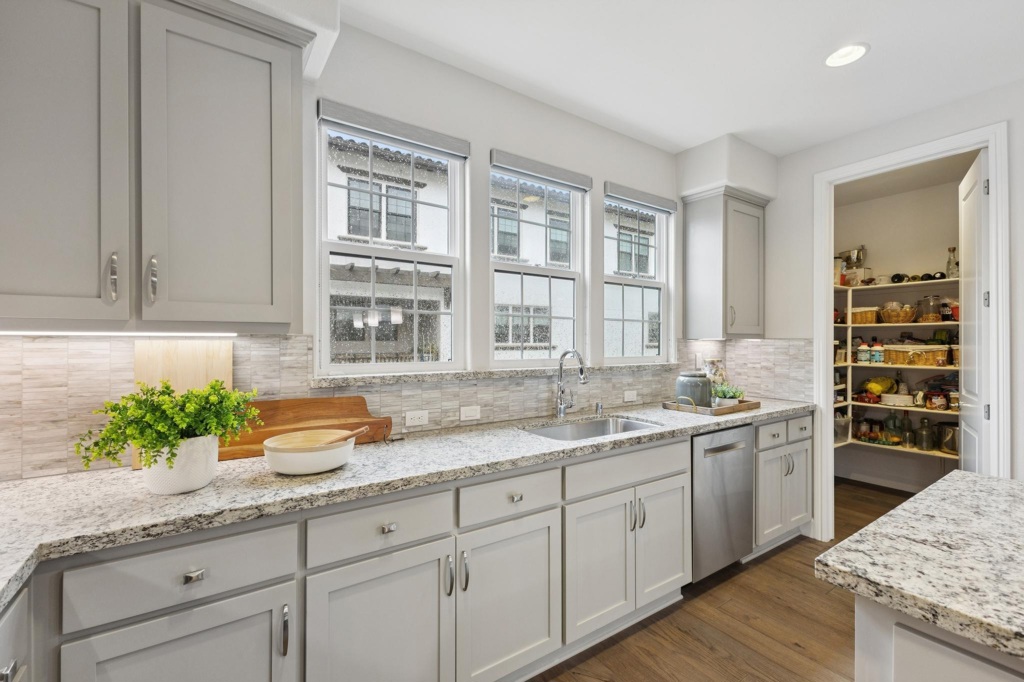 Newer East facing townhouse-style condo in the Andares community by Summerhill Homes is perfect for today's lifestyle. Built in 2018, this modern residence offers over 1950 sq ft of thoughtfully designed living space, with 4 bedrooms and 3 ½ baths. Gleaming hardwood floors and a ground level bedroom suite is perfect for guests or an office. The open-concept kitchen, dining area, and living room create a seamless flow, ideal for entertaining and everyday living. The sunny kitchen is a chef’s dream, with stainless appliances, gas range/oven, walk-in pantry, and a huge center island making meal preparation a breeze. A viewing balcony and convenient powder bath complete the middle floor. Upstairs you will find the luxurious primary suite, with an inviting bath with step-in shower and dual vanity, along with a spacious walk-in closet with organizers. Two additional large bedrooms, a full bath, and a laundry area complete this level, offering ample space for family and guests. There is a 2 car garage wired for EV charging with abundant storage and tankless water heater. This quiet complex is located within walking distance of Hart Middle School, with convenient access to freeways, BART, and shopping. Welcome home!