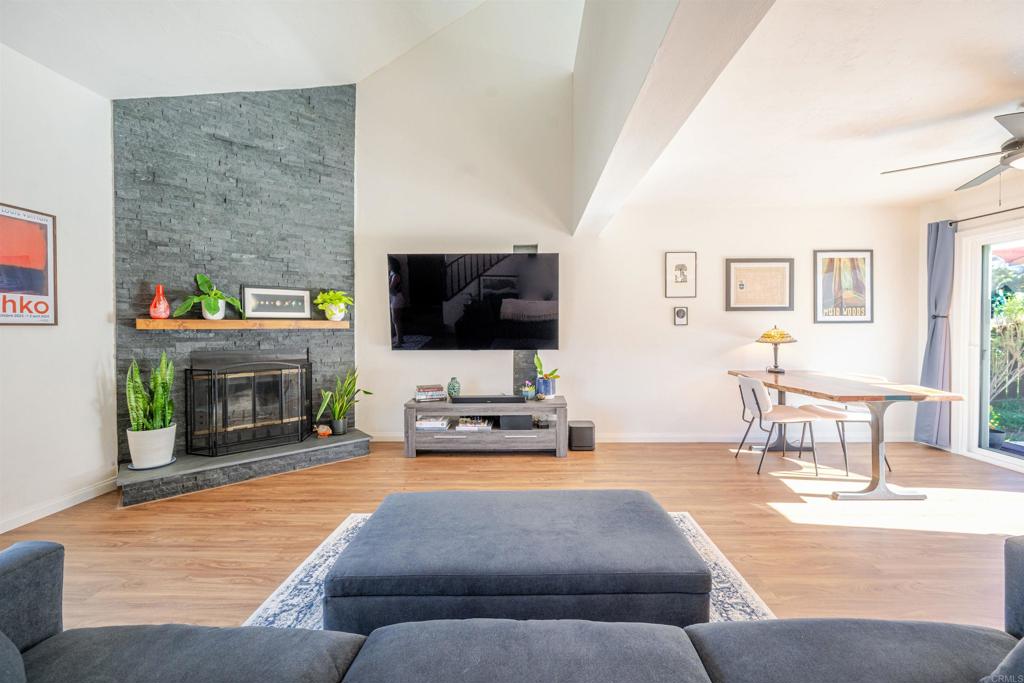 Welcome home to this thoughtfully renovated one-bedroom condo. Ideally located near the 78 freeway for an easy commute, yet tucked into a peaceful setting with a spacious, grassy backyard. All-new double-pane windows and sliding glass doors allow for abundant natural light. LVP flooring with a new subfloor runs throughout the entire home, including closets, creating a seamless and modern look. The updated kitchen shines with butcher block countertops, subway tile backsplash, and all updated appliances. The inviting living area features a beautifully designed fireplace - perfect for cozy evenings at home. The bathroom has been completely remodeled with a new subfloor, tile flooring, a tiled walk-in shower, modern fixtures, and a sleek sliding glass shower door. Additional upgrades include washer, dryer, water heater, a Mitsubishi mini-split AC/heater system with over 10 years remaining on a transferable, all-inclusive warranty—providing efficient, year-round comfort at a low monthly cost. The HOA has recently completed major improvements, including a new roof and front balcony. With extensive upgrades throughout, a two car garage and driveway, abundant natural light, outdoor space rarely found in condos, and a convenient Vista location close to shopping, dining, and major freeways, this move-in-ready home is an exceptional opportunity you won’t want to miss!