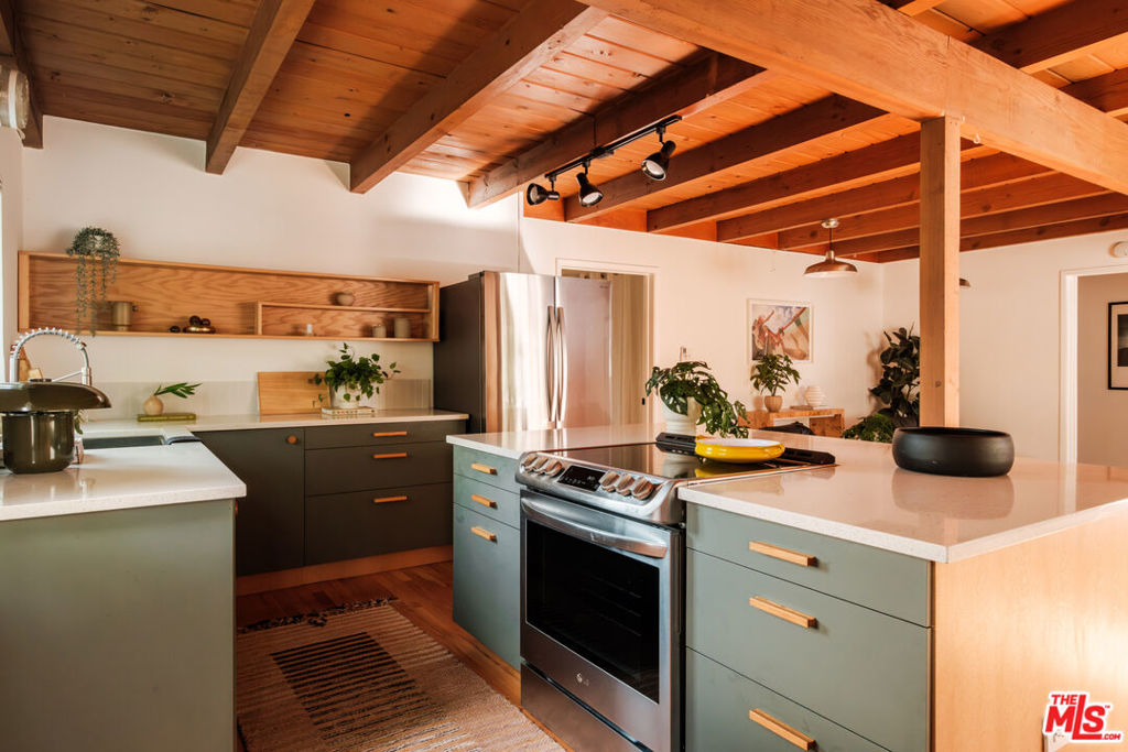 Showcasing post and beam perfection, the O'Keefe Residence features gorgeous wood ceilings and solid red oak floors, with a warm, architectural tone and open-concept layout that allows natural light to flow effortlessly throughout. This true midcentury modern retreat was also the original model home for the private Annwood Terrace enclave in Alhambra. Built in 1960 by John O'Keefe, this architectural gem sits on a sprawling nearly-quarter-acre lot at the end of a private road, with only one adjoining neighbor. Expansive living spaces connect seamlessly to the outdoors, offering endless possibilities for entertaining, future expansion, or peaceful everyday living. Thoughtfully updated throughout, the home features a renovated kitchen with quartz terrazzo counters and custom wood shelving and accents handcrafted by the current owner. Newer solid oak floors run throughout, complemented by refreshed bathrooms with chic new flooring. Major system upgrades include updated electrical, upgraded plumbing, zoned air conditioning, dual-pane windows, and more. Outside, a classic breezeblock wall frames the space, with a generous lot that invites gardening, alfresco dining, and creative expansion, with mature lemon, guava, kumquat, and passionfruit trees already in place. Solar panels (to be paid off at closing) enhance energy efficiency and lower utility costs, aligning beautifully with the home's sustainable lifestyle. Live out your urban farm dreams all while being moments from cultural and dining hubs in downtown Alhambra, San Gabriel, old town Pasadena and DTLA. Located in Alhambra and perfectly positioned near the acclaimed Mission District of San Gabriel, you're surrounded by a world-class culinary scene. Alhambra is celebrated as a true foodie destination, home to over 250 restaurants offering global flavors - from Asian fusion and Michelin-recommended favorites to beloved local classics and trend-setting dessert spots. Stroll Main Street for cafes and restaurants, or explore the vibrant Mission Drive corridor, including the popular Blossom Market Hall just minutes away. Farmers market lovers will appreciate the weekly Alhambra market, adding to the area's lively community feel. Whether you're enjoying a casual breakfast out, exploring dim sum and Asian-inspired cuisine along Main Street or ending the evening with dessert nearby, this location delivers. A truly unique opportunity to own a distinctive midcentury home on an extraordinary amount of land, in one of the LA area's most dynamic neighborhoods.
