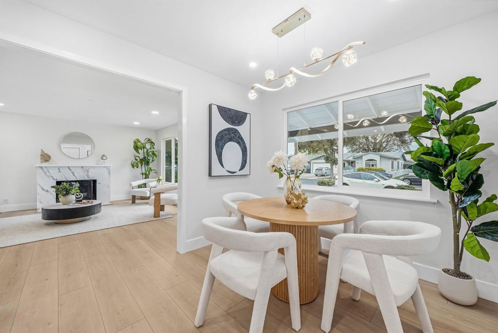 Welcome to this fully renovated north facing gem in the heart of Newark, offering modern upgrades, everyday convenience, and an unbeatable location. Step inside to an inviting open floor plan featuring luxury vinyl flooring, fresh interior and exterior paint, a cozy fireplace, and large windows that fill the home with abundant natural light. The beautifully remodeled kitchen showcases sleek cabinetry, quartz countertops, stainless steel appliances, and a built in microwave - perfect for both daily living and entertaining. Both bathrooms have been tastefully updated with contemporary finishes. Enjoy California living at its best with a spacious front porch and newly landscaped backyard, complete with a cozy patio area ideal for relaxing or hosting gatherings. Conveniently located just minutes from Tesla charging stations and within walking distance to supermarkets. Commuters will appreciate quick access to I-880, the Dumbarton Bridge, and BART for easy travel throughout the Bay Area. Move in ready and thoughtfully upgraded, this home is a rare opportunity you won’t want to miss.