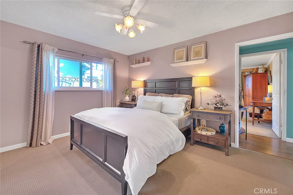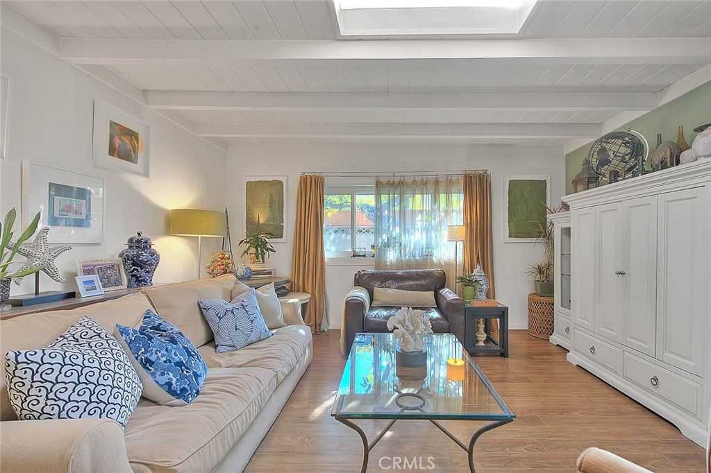 Rare opportunity in West Garden Grove’s desirable Eastgate community! Five-bedroom homes are seldom available, and this expansive single-level ranch-style home offers 5 bedrooms, 3 full baths, and over 2,300 square feet of living space on a 6,300 square foot lot. A welcoming front courtyard sets the tone as you enter this thoughtfully designed one-level floor plan ideal for today’s living needs. One wing of the home features a private primary en suite complete with a full bath and its own separate entrance perfect for multigenerational living, guests, or added privacy. The opposite wing offers a second primary bedroom and three additional bedrooms perfect for family, guests, or home offices, and two full bathrooms creating a comfortable and well-balanced layout for everyday living. The kitchen flows seamlessly into a spacious living room with a fireplace, while an additional living area with exposed wood beam ceilings and a skylight provides a warm, inviting retreat. Both living spaces open to the backyard, creating an effortless indoor-outdoor connection. Step outside to a peaceful, low-maintenance backyard featuring a paved patio area, decorative brick fencing, an Alumawood patio cover, and beautifully landscaped backyard with drought- tolerant plants and avocado tree with a charming walking path, ideal for relaxing or entertaining. Additional highlights include a two-car garage, tankless water heater, newer Milgard windows and sliding doors throughout, new appliances, upgraded flooring, and a refaced fireplace. Conveniently located near freeways, shopping, and dining, this truly special home offers generous space, everyday comfort, and a layout that feels welcoming the moment you arrive.