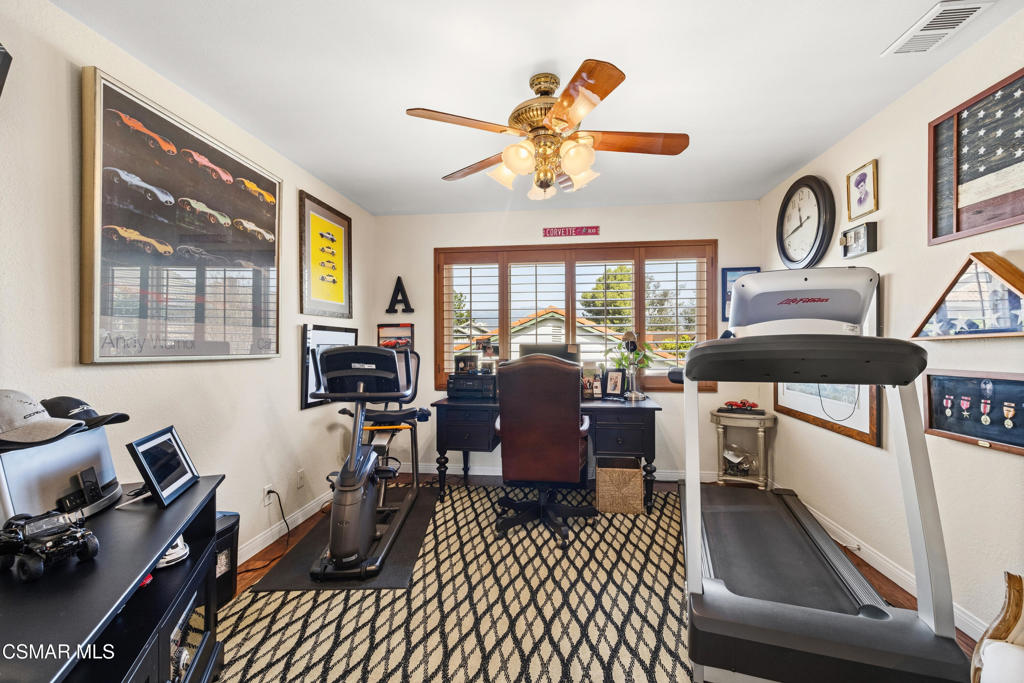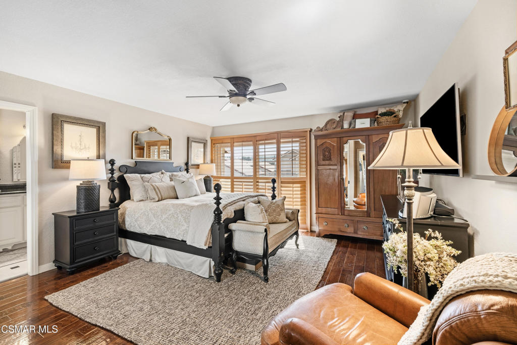 Welcome to this beautiful two-story home where timeless craftsmanship meets warmth and comfort. This immaculate three-bedroom, two-and-a-half-bath residence features a welcoming courtyard with an elegant wrought iron gate and a tranquil water fountain. Inside, you'll find a thoughtfully designed layout filled with natural light, rich wood flooring, and custom details throughout. The living space features a stunning stacked stone fireplace, plantation shutters, and custom millwork. The layout flows seamlessly into the dining area and kitchen, creating the perfect setting for everyday living and entertaining.Upstairs, you'll find a loft and spacious bedrooms which provide comfort and style. All bedroom closets have custom shelving for optimal storage. The primary bathroom features dual vanities with stone countertops, abundant cabinetry, and a claw soaking tub for ultimate relaxation. Step outside and discover a true backyard sanctuary. A BBQ with pergola sets the stage for entertaining, while lush landscaping, charming garden areas, and a private putting green offer both relaxation and recreation. Additional highlights include a finished garage with organized storage, a finished shed for all your outdoor tools, designer lighting throughout the home, and numerous custom touches that reflect pride of ownership.