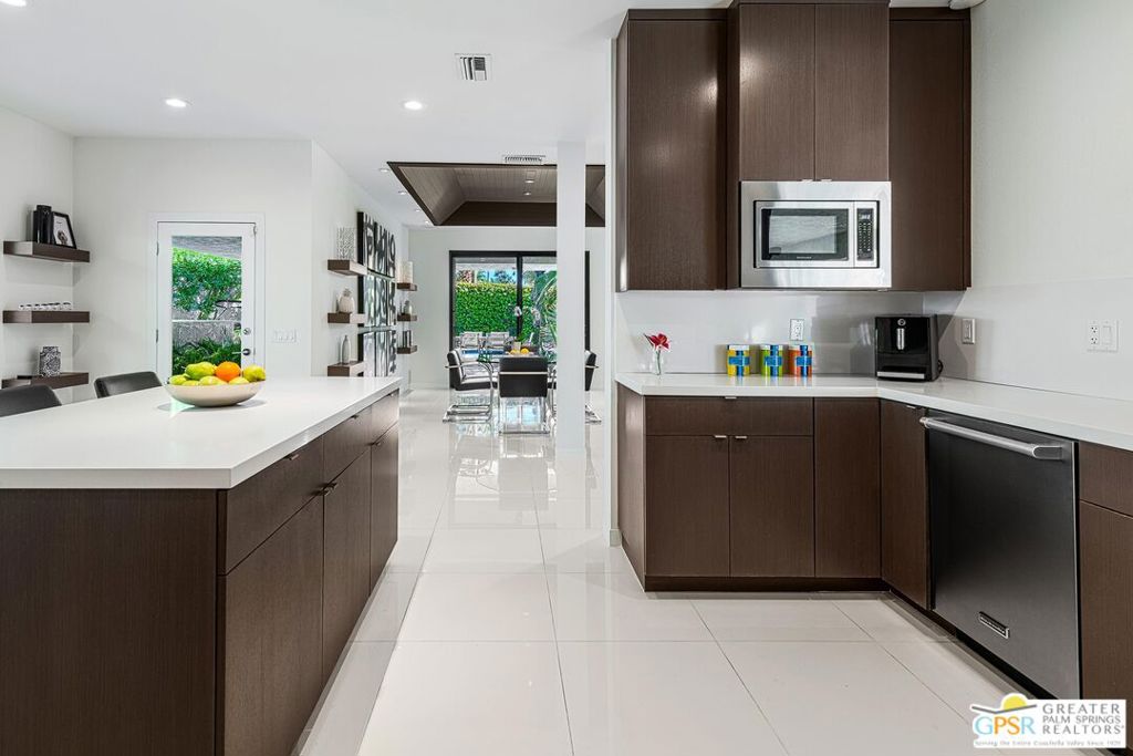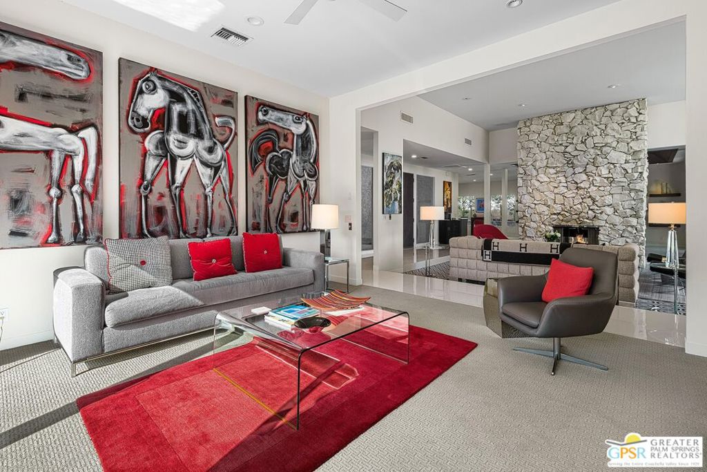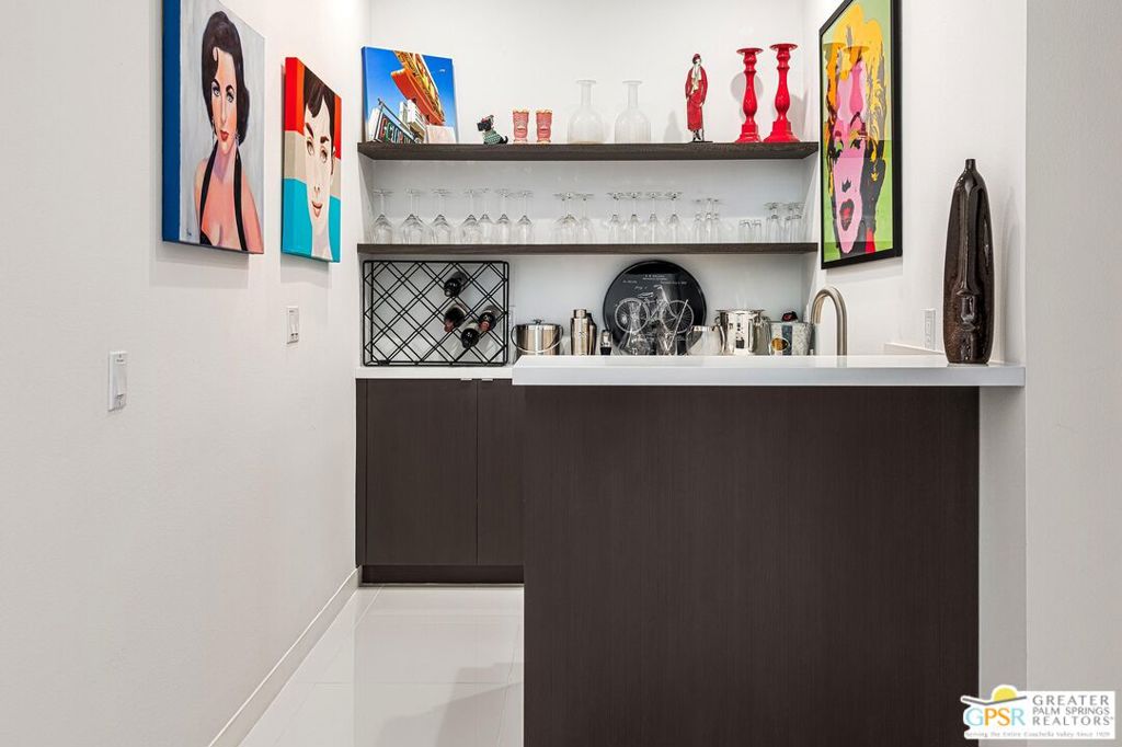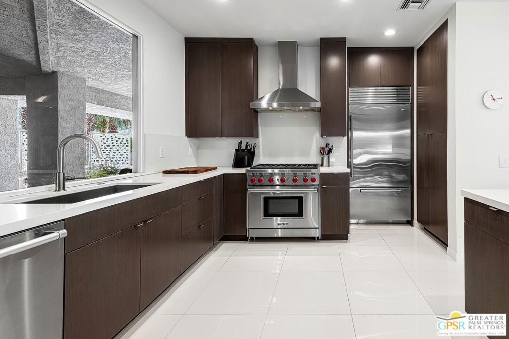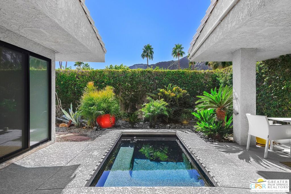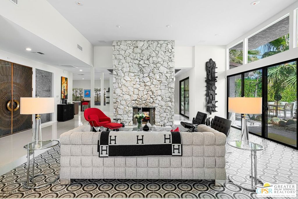 Step through the grand double-door entry into a home that feels like a warm, luxurious embrace. Set within Vista Las Palmas, this residence is one of just 12 homes behind the private gates of Los Robles, offering an exceptional sense of exclusivity and privacy. A masterfully designed open-concept layout sets the tone for sophisticated living, while the chef's kitchen shines with high-end stainless steel appliances and a sprawling island built for gathering. At the heart of the home, the sunken living room stuns with soaring vaulted ceilings and a dramatic rock fireplace that anchors the space with texture and scale. Every detail is thoughtfully curated for comfort and style from tray ceilings and designer wallpaper to a dedicated media room and built-in shelving throughout. The primary suite is a true sanctuary, offering direct pool access and a spa-inspired ensuite bath. Two guest bedrooms provide exceptional privacy, each with its own ensuite and modern floating vanity. Outside, your private oasis awaits: a sparkling pool heated efficiently by both gas and solar, plus a dedicated pool bath featuring elegant stone counters. A beautiful fusion of architectural character and functional luxury, this residence is designed to impress and to live in effortlessly.