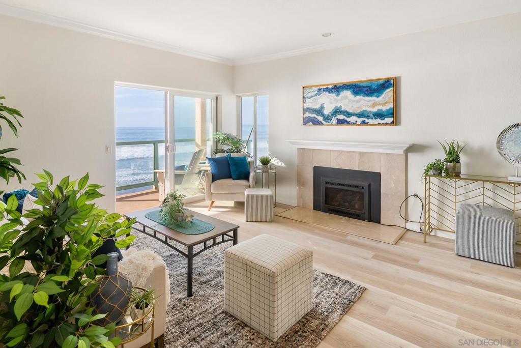 Light and bright top-floor condominium with stunning ocean views from every room. Recently updated with fresh paint, new flooring throughout, this home is move-in ready. The spacious living room features a cozy fireplace and opens to a large private balcony—perfect for enjoying breathtaking sunsets and coastal breezes. The expansive kitchen offers an island with bar seating and brand-new appliances, ideal for everyday living and entertaining alike. A dedicated laundry room includes a full-size washer and dryer for added convenience. The generous primary suite boasts ample closet space and an en-suite bath with dual sinks and a soaking tub. Two additional bedrooms capture beautiful northwest-facing ocean views. Located in the exclusive gated community of Sandpiper, residents enjoy elevator access and two assigned underground parking spaces. Experience the very best of coastal living in this rare opportunity by the sea. A great opportunity and a true must see!